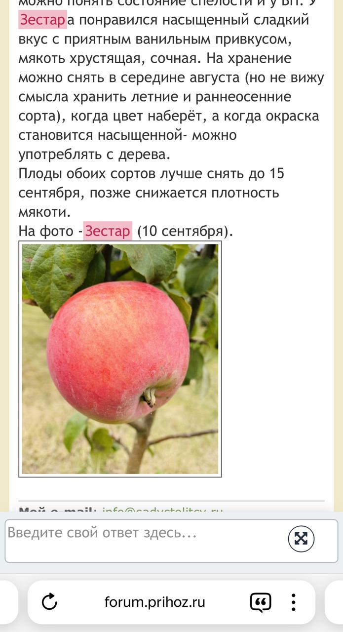 Как ни крути, на данный момент сорт изучен еще недостаточно хорошо. Никто не показал хотя бы один ящик Зестара. Немного погуглил форум и наткнулся на любопытную заметку 8-летней давности от Ирины А (сад в г.Юрьев-Польский Владимирской обл.):