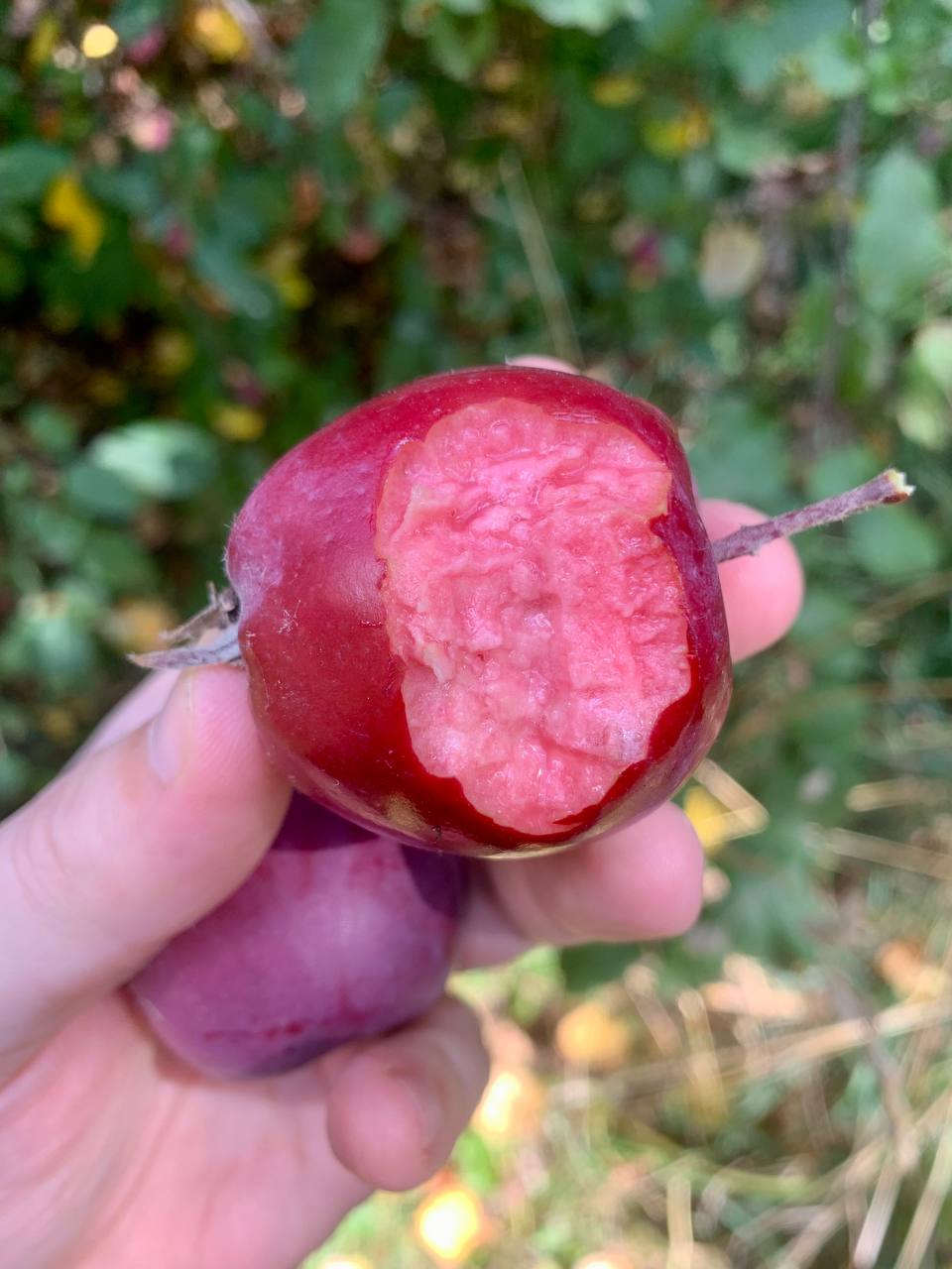Плоды были округлыми, желтыми с красными штрихами, вот такими.