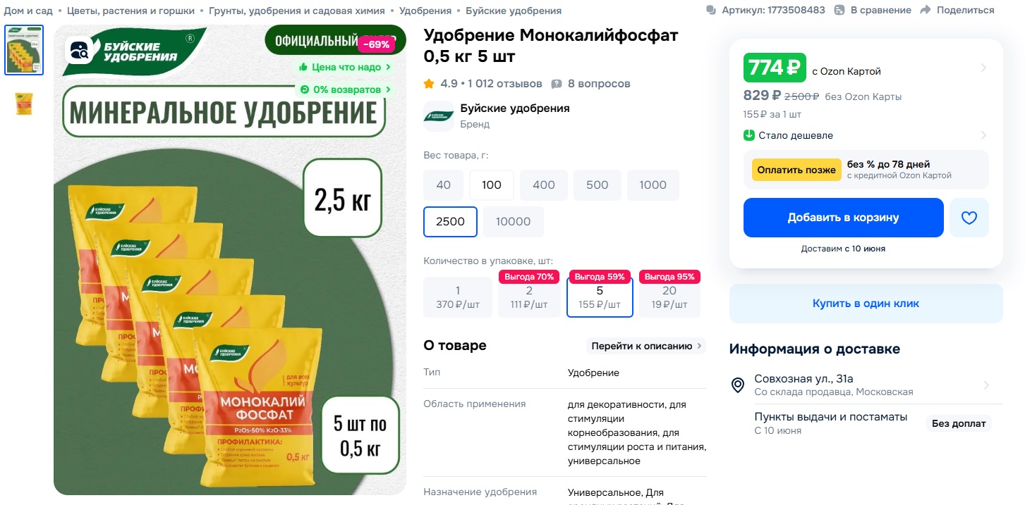 Посмотрел цены: 500-600 рублей за 0,5 кг от Буйских даже без всяких акций. При том, что этого, получается, достаточно на 2 полных бочки-евробарабана (227 литров). Для замены селитры в зимнеподготовительной подкормке вполне по карману. Спасибо.