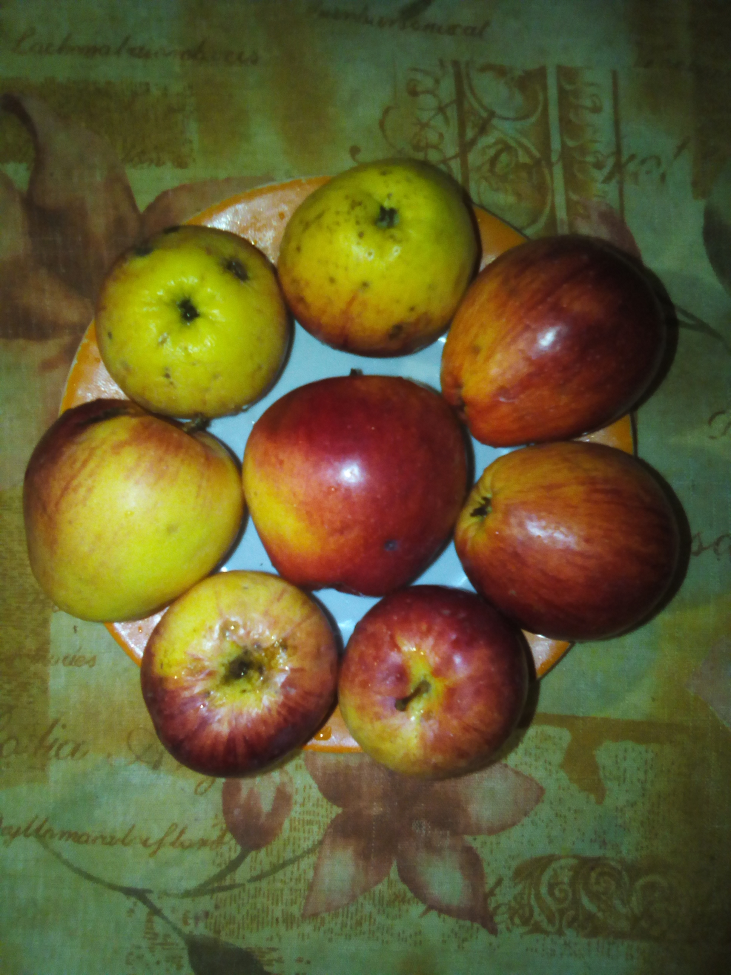 А вот яблоки, купленные на базаре, как Орлик. Первый сильный признак у этих купленных яблок, это кожура - плотная, не съедобная. Вкус очень приятный, кисловато сладкий, мякоть наверно средней или чуть ниже плотности на данный момент, белого с еле заметной зеленцой. Вес около 140 г. (хотя я наверно самые крупные выбрал).