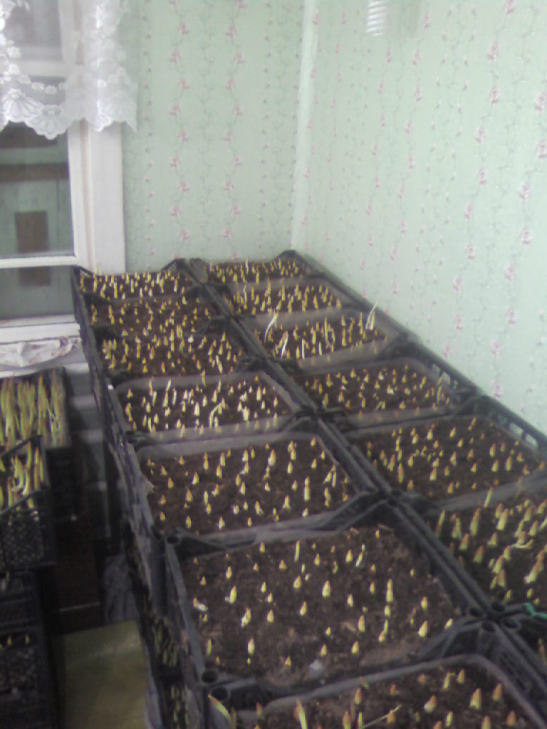 Сегодня достал ящики с тюльпанами.