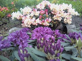 Анина,в групповой посадке посажены только финские рододендроны. Помню ,что там были сорта: Хельсинский университе,Гаага,Тигерштет и ещё что-то.А подписать сорта можете?