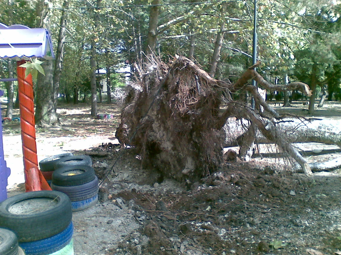 Обкопав её в радиусе 1-го метра обнаружил боковые корни толщиной с руку, а когда с помощью бензопилы вырезали корневую "шейку" - вниз уходил центральный корень толщиной с ногу. Ствол у основании был около 40см. Высота груши почти 11м, сорт - Ранняя Куйбышевской селекции.