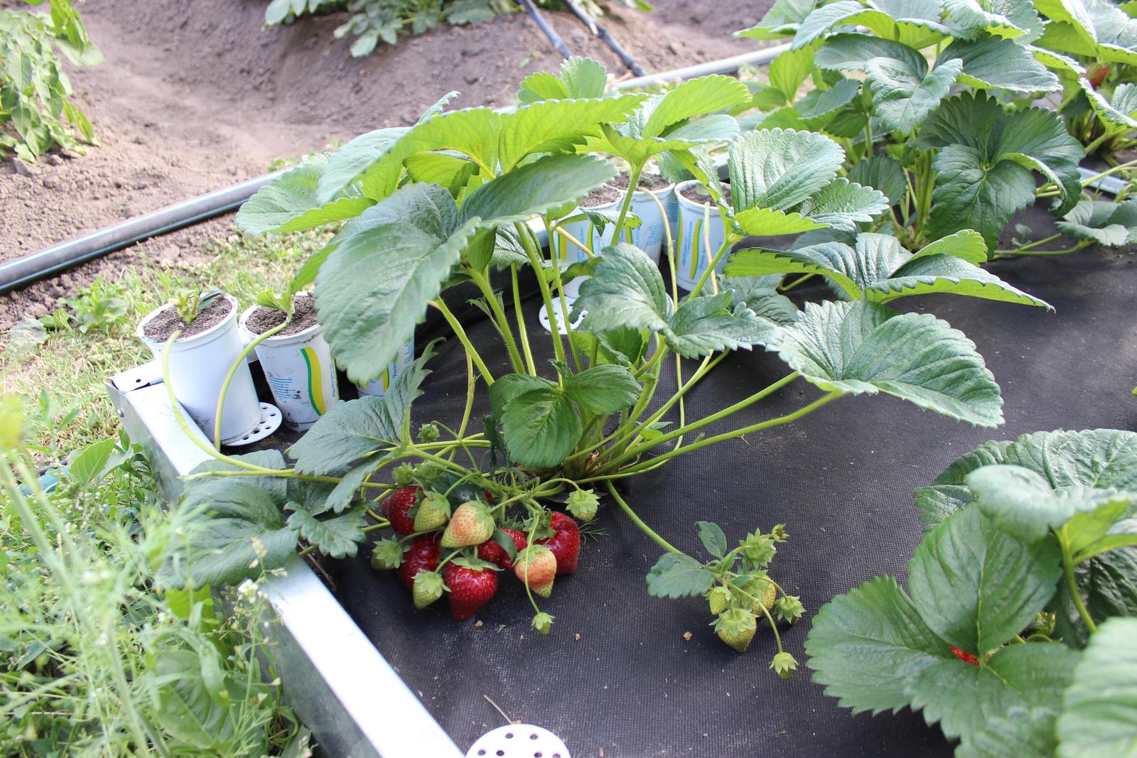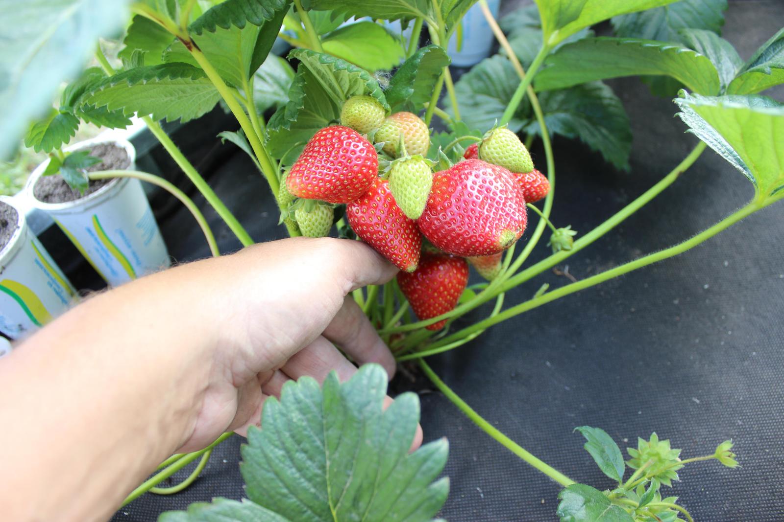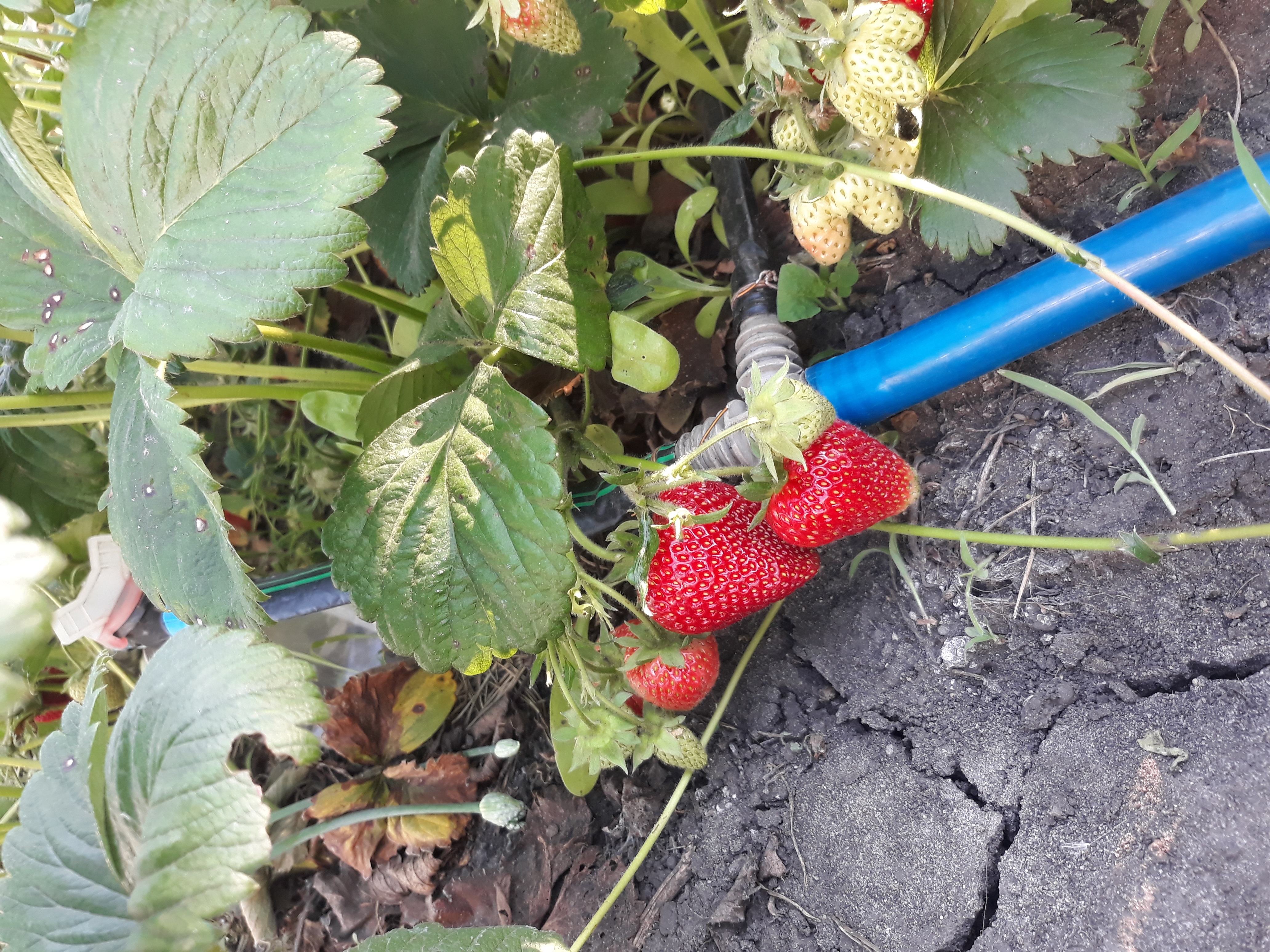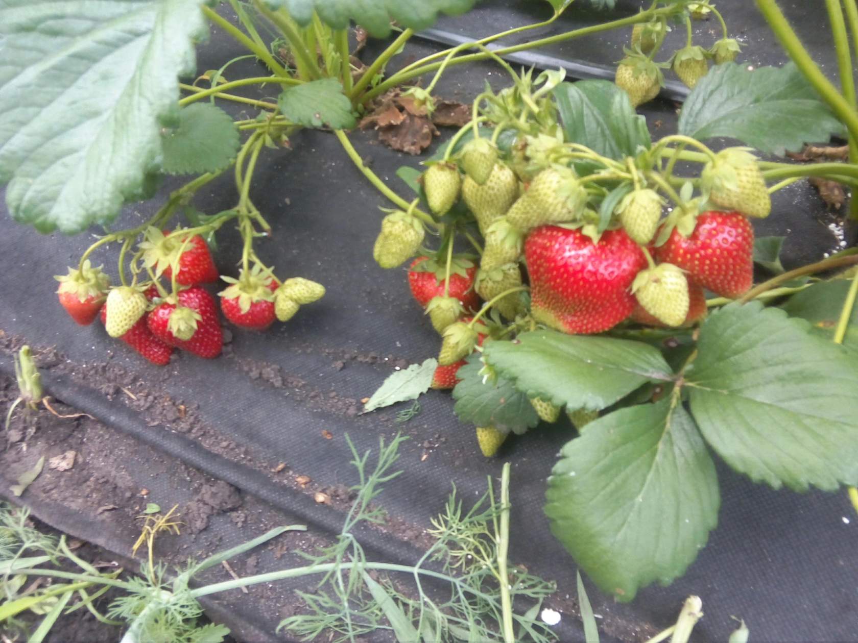 Сирия, первогодки, сентябрьской посадки. Кусты гигантские, листья лопухи, на кустах по 2 цветоноса. Первые ягоды более 50 гр.