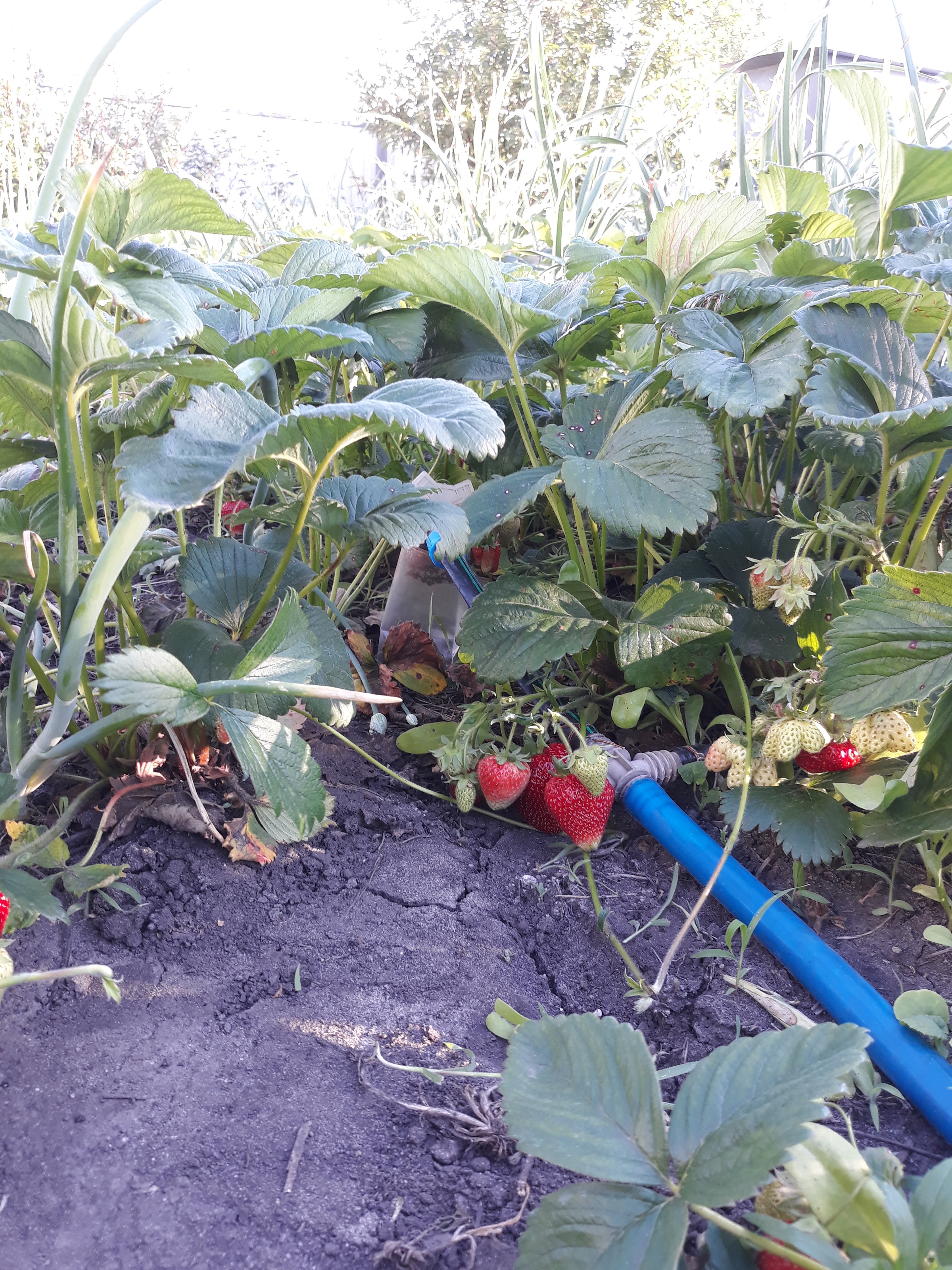 Роман С., Я также считал,но пересадив с полсотни укоренившихся усов в начале августа 2017 года,сейчас пересмотрел мнение.На той делянке листва раза в два выше и мощнее твоих кустов,ягода доходит до среднего куриного яйца.И усов море.В прошлом году ведра два выбросил,ведро раздал и еще с полсотни кустиков рассадил.В этом сезоне ягода созревает примерно с прошедшей субботы.Полив капельный.