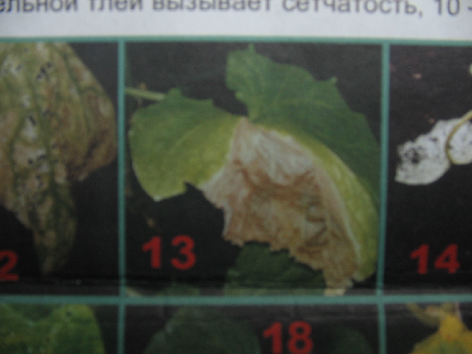 Грант, пользуясь случаем, тоже фото покажу. Уезжала на 2 недели, приехала, в одной теплице все огурцы такие. На более старых листьях пятна сливаются, лист засыхает. Было мнение, что это аскохитоз. Как вы думаете? Это в 2013 было, но вопрос остался.