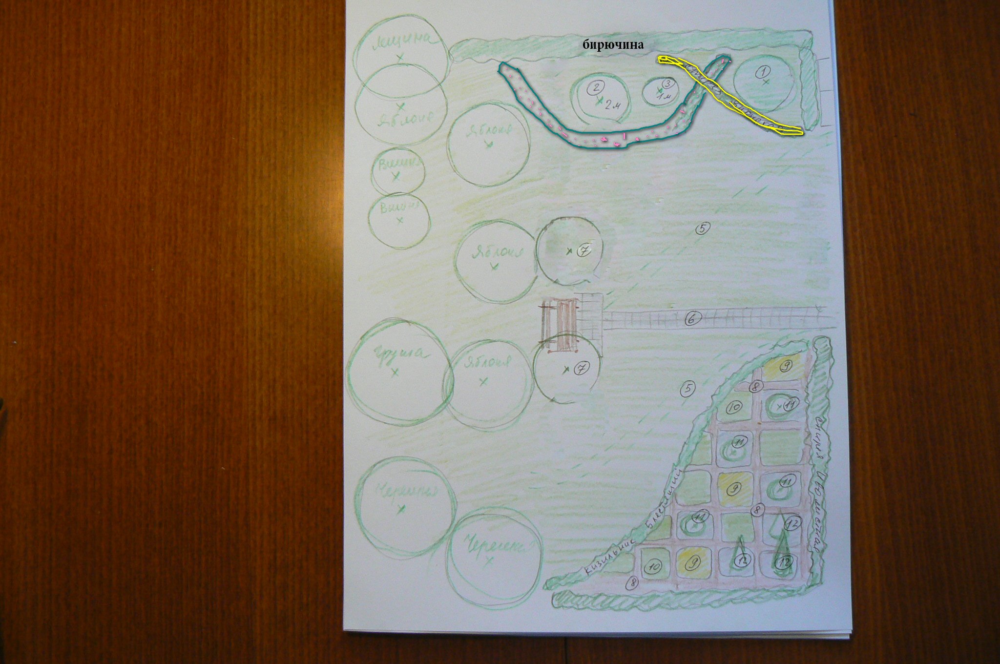 Это хорошо, если что-то, Татьяна, пригодится. Мой вариант "по диагонали" - динамичный, у тебя - более спокойный. И мне твой нравится. Арка, конечно, шикарная, только это - плющ. Придётся что-то более приспособленное придумать. Актинидия? У нас так вот получилось. Цветы в приствольном кругу - хорошо, если дерево - клён приречный, а если яблоня? Как плоды собирать? Но питанию дерева они не помешают, вреда не нанесут, так как на таком расстоянии от ствола только толстые проводящие корни. Нежные и тонкие, которые воду тянут - за проекцией (на земле) контура кроны.