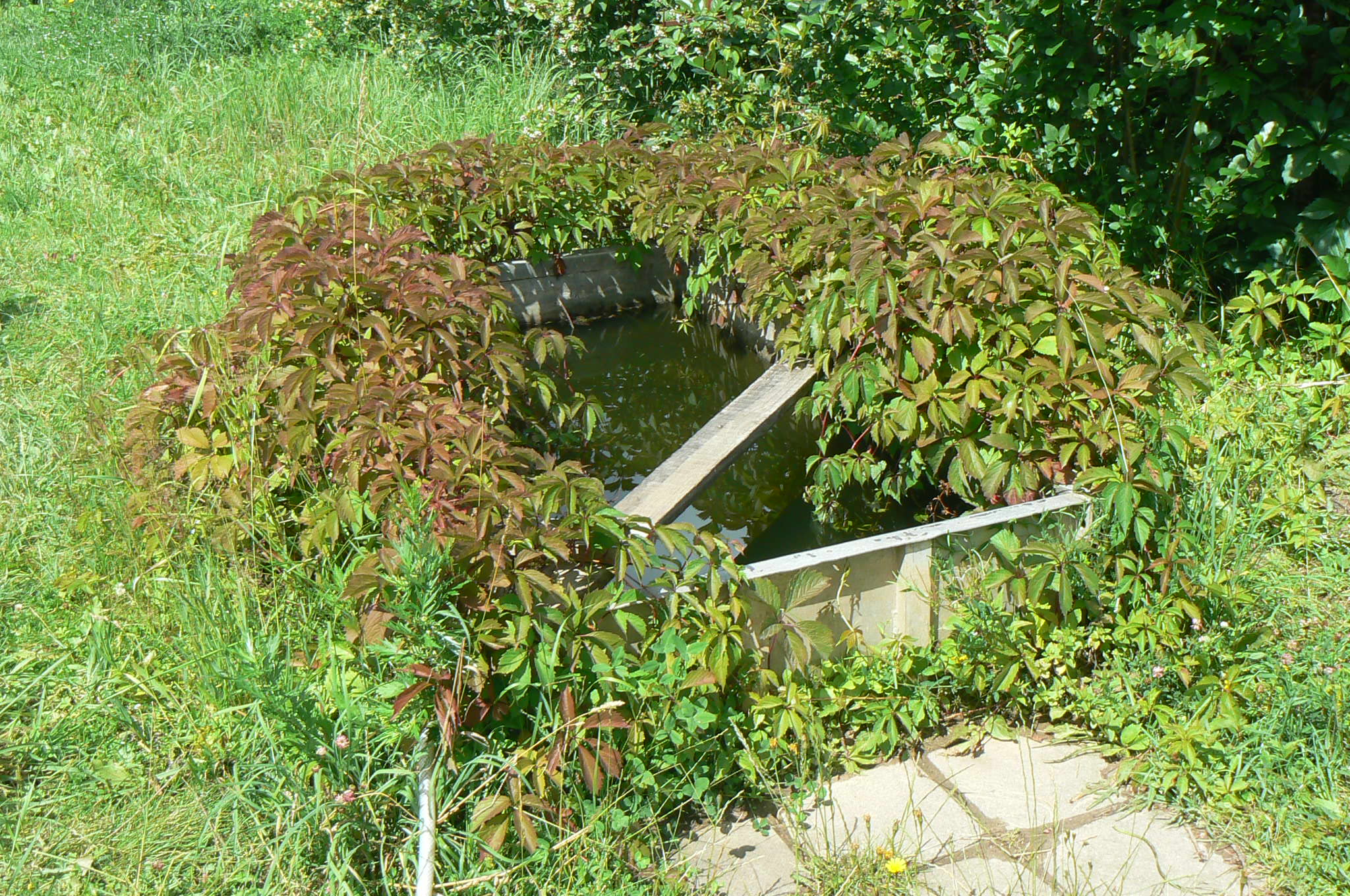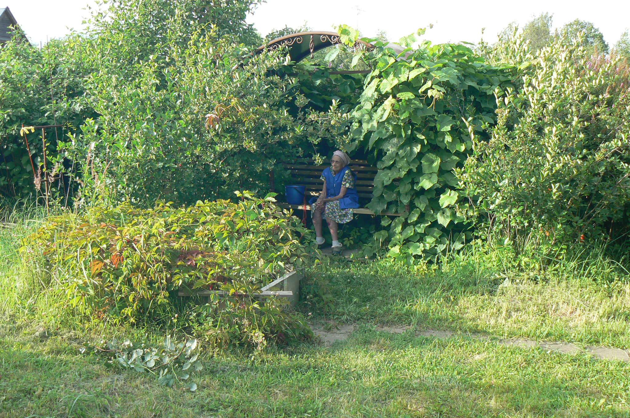 На беседке у нас виноград. А перед беседкой - объём с водой для полива малины и сада. Замаскирован пятилисточковым.