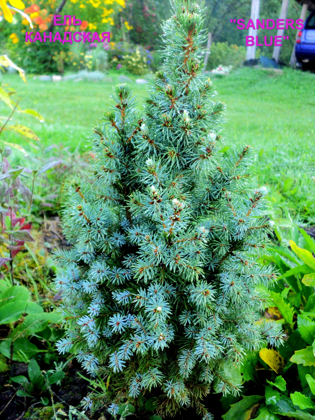Не, говорят, не вырастет 4м у нас, максимум 3. На что я надеюсь, четыре не укрою. Хотя, потом можно её резать, как кто захочет. А "родственники", они тоже канадские, тоже конусы. Вот Сандерс Блю, он у меня уже около 40см. Это фото 2013года.