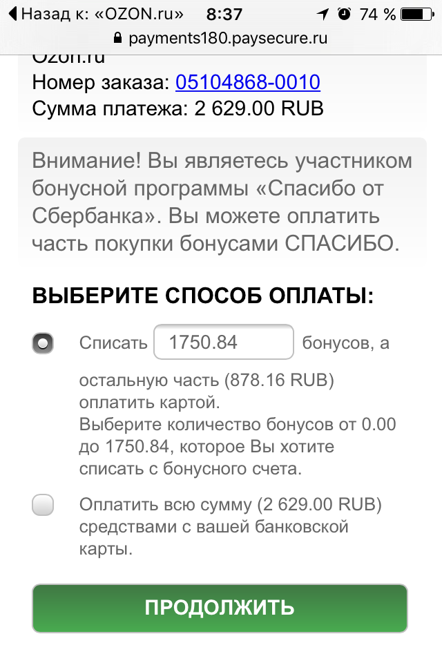 Заказала свою любимую кастрюлину про запас на озоне рондель за 878 руб. :-) 1750 списались бонусы спасибо от Сбербанка.