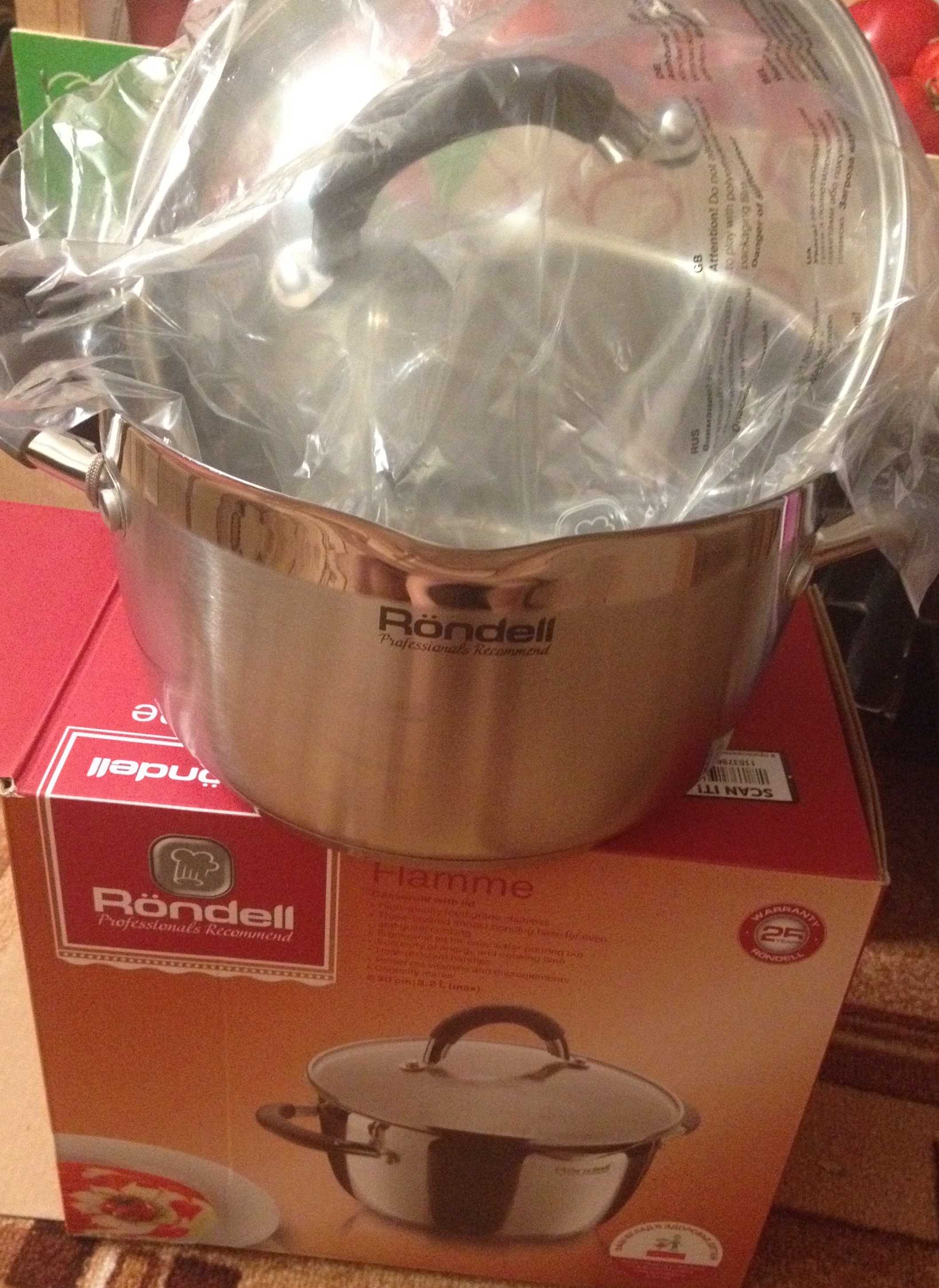 Забрала я свой заказ с озона :so_happy: нравится именно эта линейка рондель, прошлая точь-в-точь у меня лет 5 при активном пользовании как новая, только блеск немного потускнел чуток, силиконовые ручки в целом состоянии ничего не порвалось на седня. Толстая и удобная, носики для слива и в крышке дырочки большие и мелкие. У меня на 3,2 она сейчас дешевле, чем меньший объём. Короче коплю бонусы от Сбербанка, жду скидки на 5 литровую.