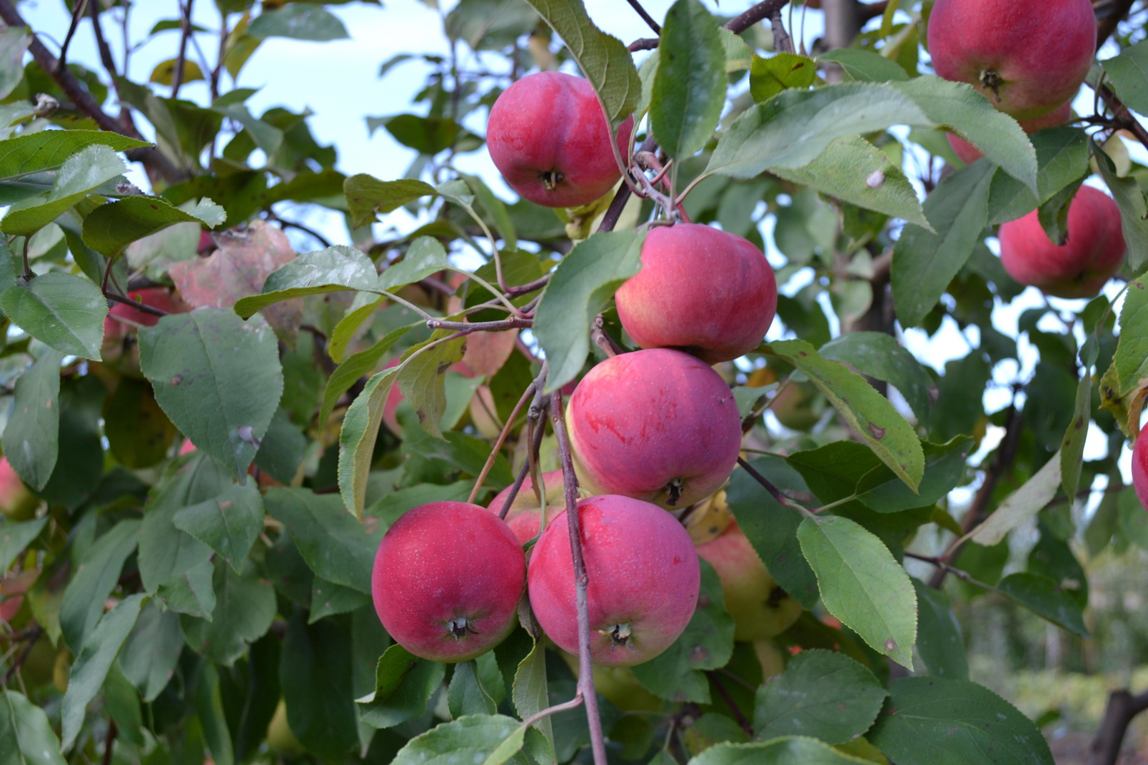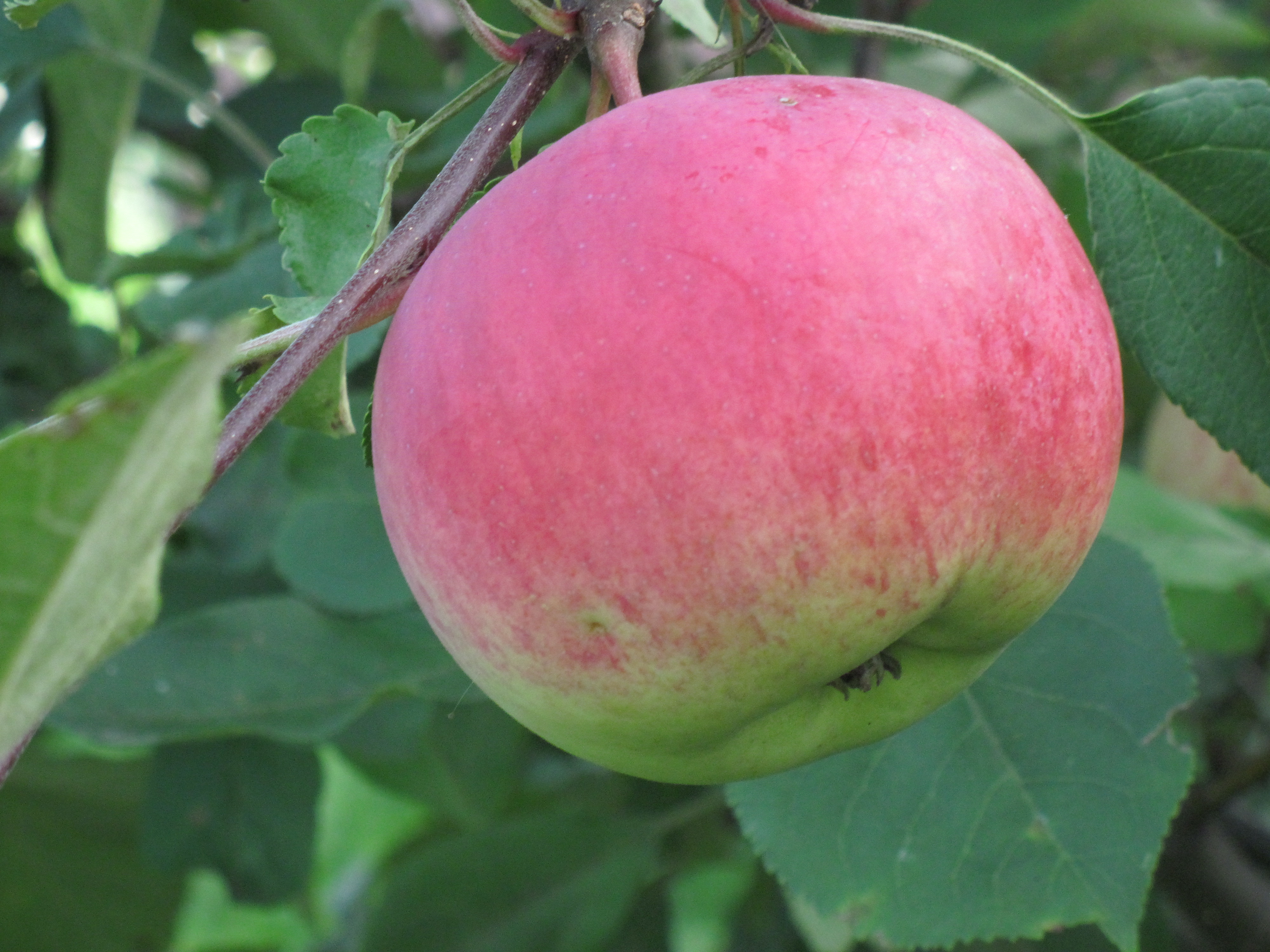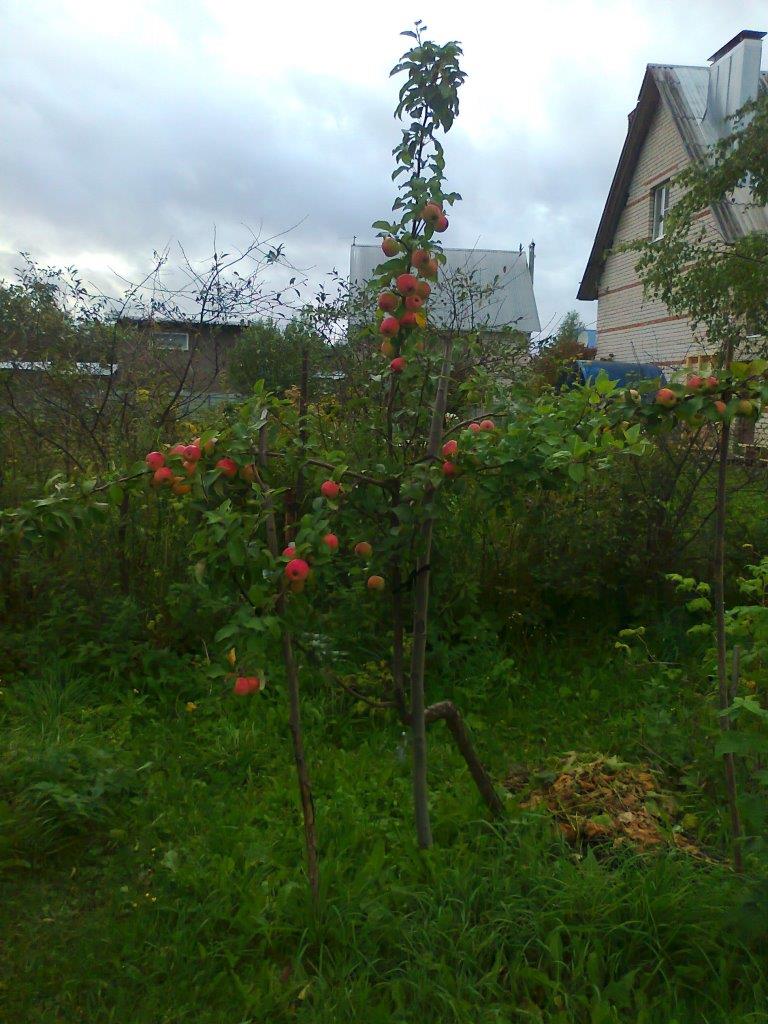 Здесь еще не упоминали наш местный сорт Аврора. Наверное, уральский сорт. В инете упоминается Аврора Уральская. Сплошной перепост, и не думаю, что от оригинатора. Потому что нет информации ни кто, ни от кого. Раньше у нас в садах была часто. Очень высокое, пирамидальное. Но при этом разломов не наблюдала. У меня долго жила, с 1984 года. Вот только в том году что-то с ней приключилось (новый хозяин удалил). На ней вырастила прививку Краса Свердловска и даже попробовала - яблоки понравились. Собственно яблоки Авроры мне нравятся, поскольку кислых не люблю. Антоновку там, Анис, Белый Налив и Боровинку. У них вкус хороший, но кислота присутствует. А Авроры плоды пряненькие, даже горчинка есть. Сначала сочные, полежат - становятся мягкими (что опять мне по вкусу). Вот специально сходила до полузаброшенного участка, подобрала несколько яблочков. Фото яблони. Тут она не очень высокая. Наверное потому, что в три ствола растет. На основном видна центральная развилка, характерная для Авроры.А. Зацепин писал(а): ↑10.10.2018, 18:05 Меня очень интересует сила роста яблонь уральских сортов. В описаниях почти все из них, кроме редких исключений (Горнист, Свердловчанин и некоторые другие) заявлены как среднерослые. Но есть сильное подозрение, что описания - это просто перепечатка данных от оригинатора,