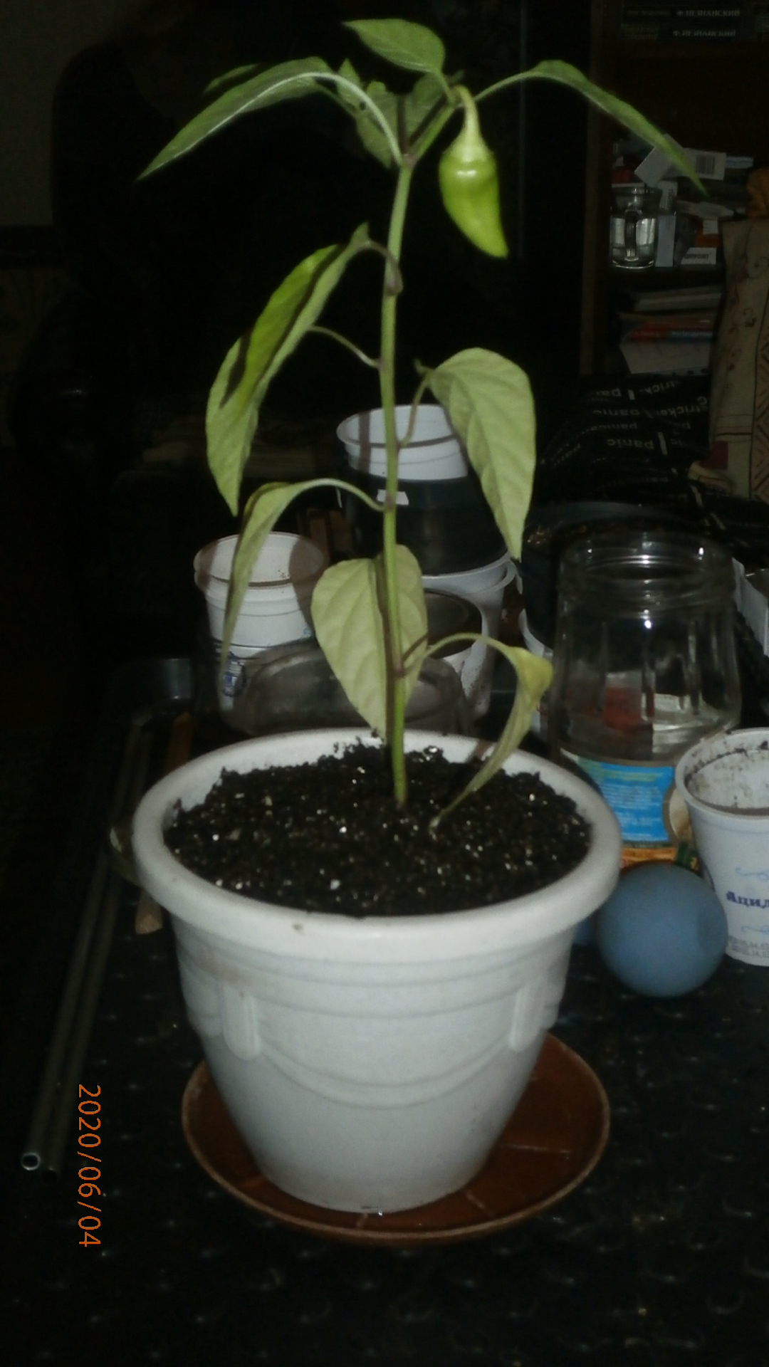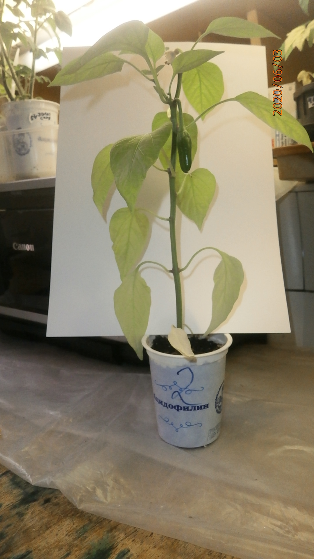 Растил все перцы вначале в стаканчиках. Все росли а один не рос. И оставил я его в "покое". А он вдруг неожиданно "рванул" и выглядит теперь вот так.