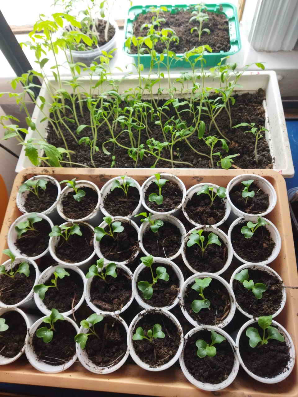 . И так каждый год. А дальше на подоконнике посеянный в тот же день штамбовый Нижегородский кудяблик. Правда, распикировала я его дня 4 назад, и всё равно выглядит намного лучше, хотя земля везде одна была до пикировки.