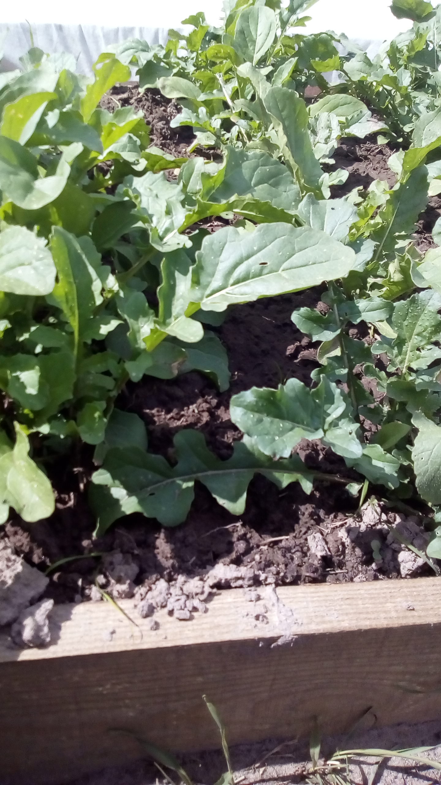 Спаржевый салат растёт. Попробовала на вкус пару листьев уже, трава травой. Растёт медленно.
