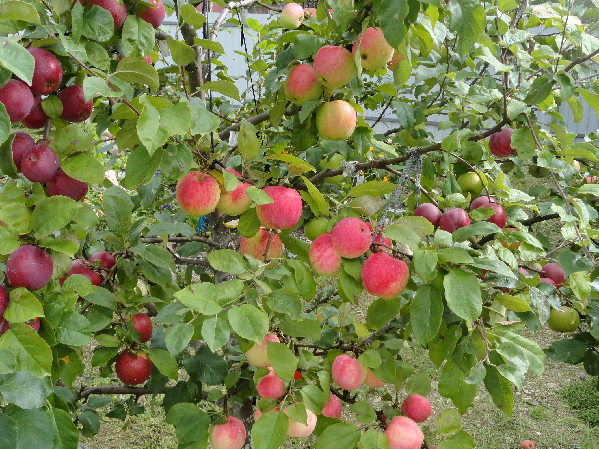 Доброго дня! На дружественном форуме задавала вопрос, но к сожалению ответа вразумительного не получила, может здесь кто разбирается. На участке растут несколько яблонь, купили участок в прошлом году, одна яблоня уже большая и видимо в возрасте, и есть ещё одна но неопределённой формы, очень похожей на колоновидную, только немного запущенную, помимо формы у неё плоды растут перпендикулярно ветке а не как у обычной яблони свисают, но на другом форуме предположили,что это может быть дичкой (хотя у бывших хозяев, среди других плодовых деревьев и кустарников дичек не наблюдается). Очень надо определиться по этой яблоне, т.к. рассматриваю её кандидатом на прививки (черенки уже купила), но если это колоновидная, то на неё прививать обычные сорта нет никакого смысла? Вот её фото: