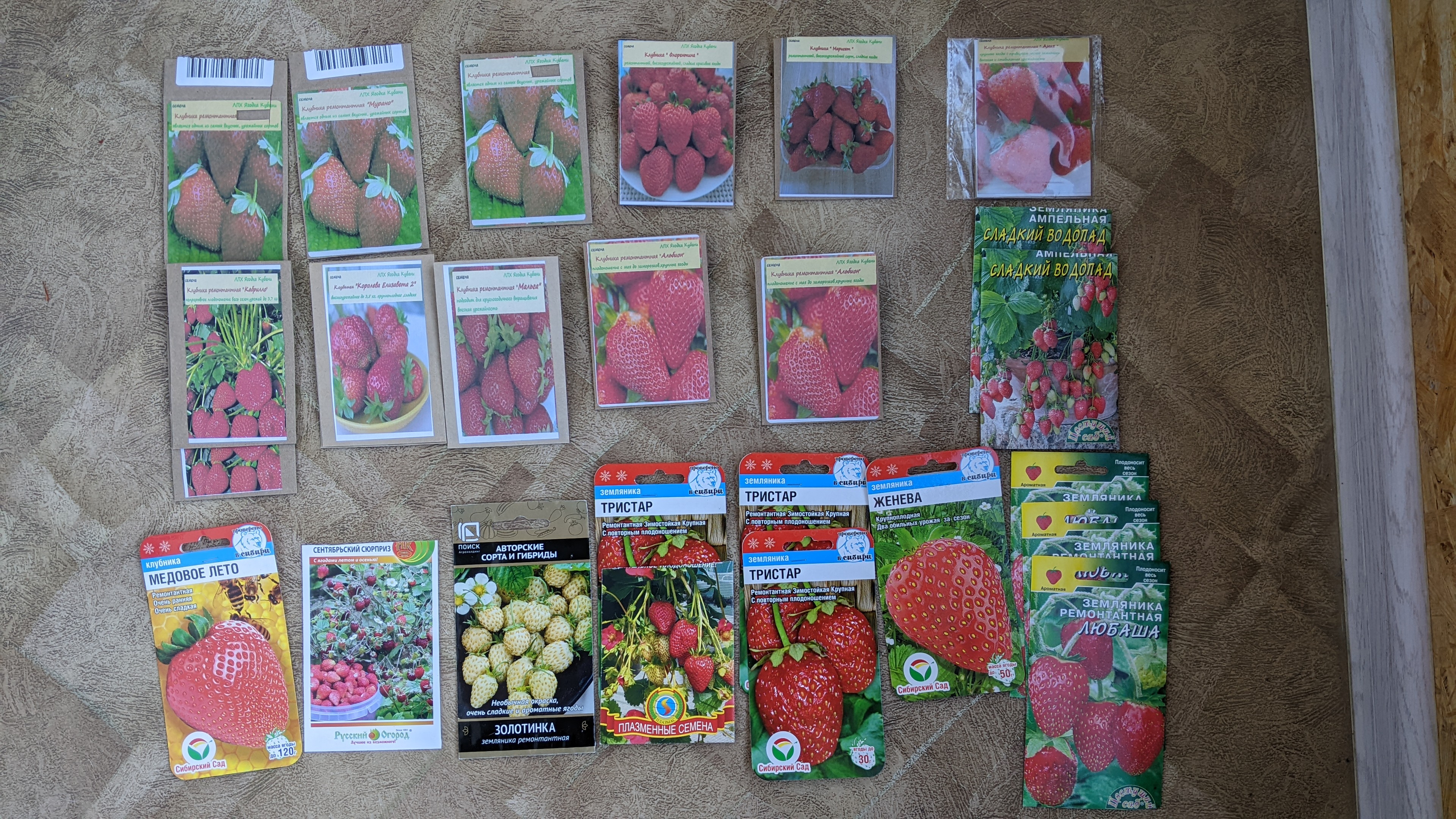 В основном крупноплодные сорта, но присутствовала и альпийская "Любаша", которую при появлении первых цветоносов отдал, не хватало места на подоконниках.