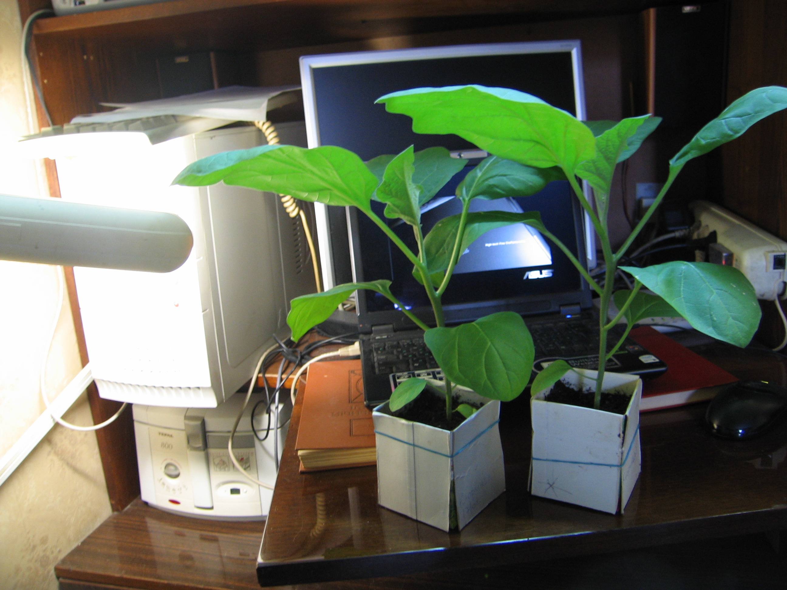 Иех, кормирла магнием, но видно недостаточно... все равно нижние листья... Вот рассада постарше которая, горшки d19, литра 3. (что-то глюканул Имадж аплоудер...)