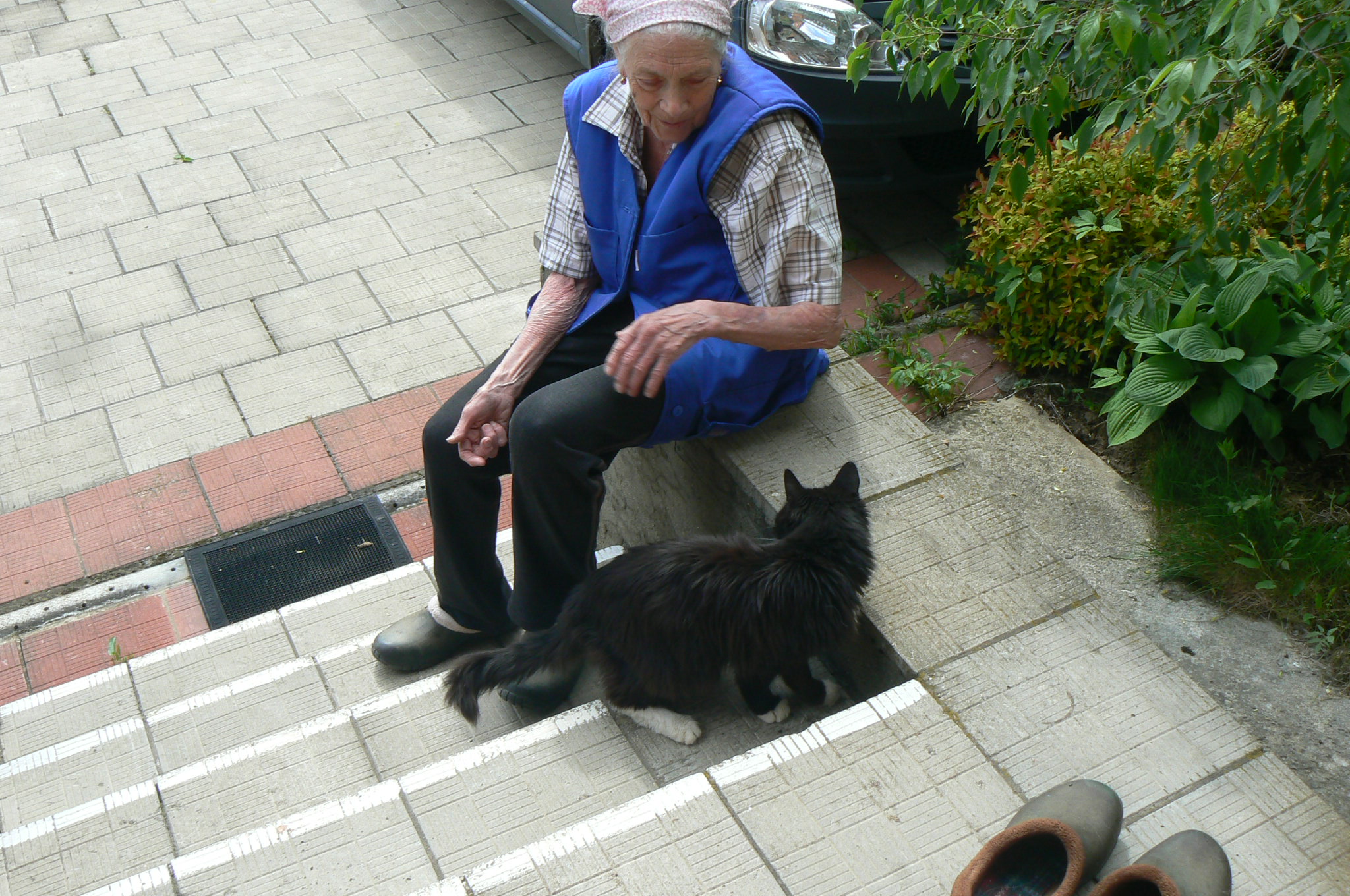 А это соседка сообразила, где её кот прохлаждается и позвала его строго.