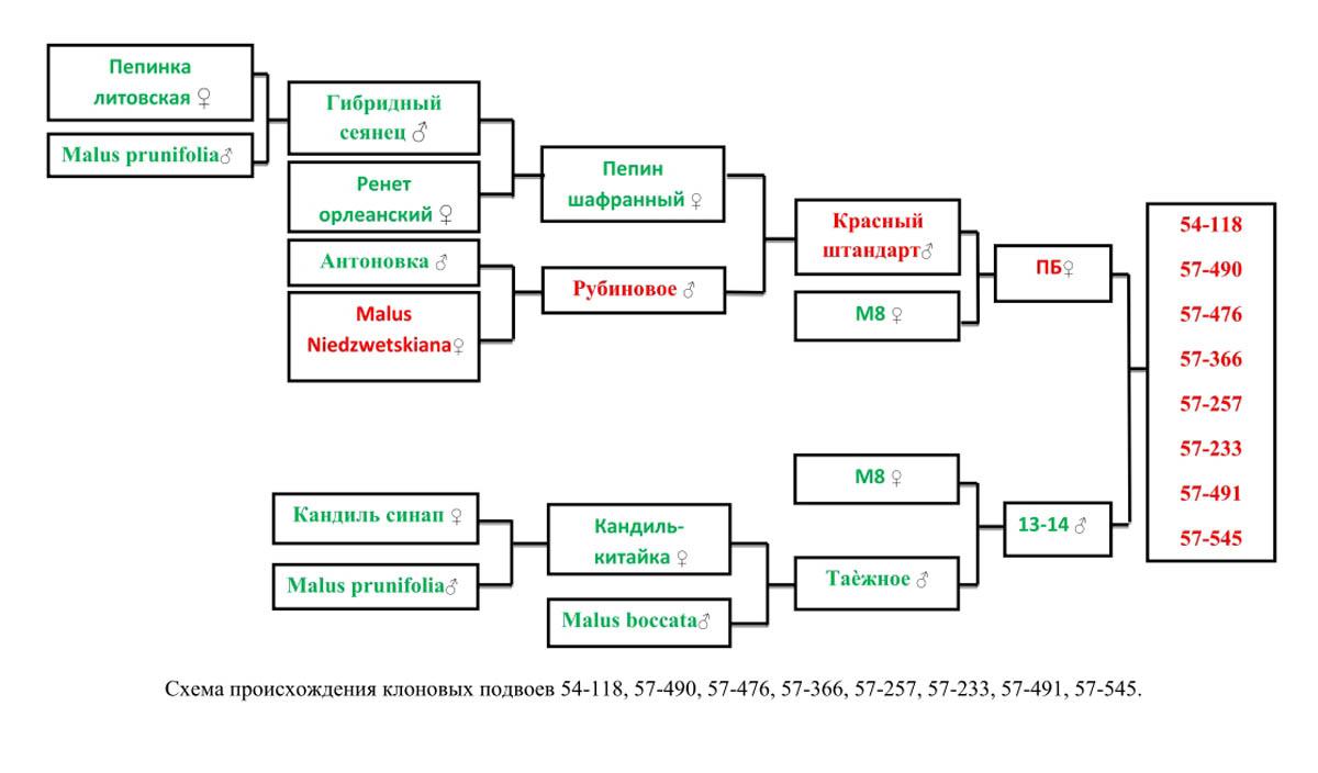 ИМХО-большая удача.Ведь для опыления исходного сорта используют неизвестные сорта,и кто папа?Другое дело-целенаправленное скрещивание,ту же Алесю отобрали из пяти сеянцев (одно яблоко).Что касается 54-118 и др. ..396-там другие критерии отбора,нежели плодовых сортов.Помимо укореняемости совместимость,влияние на плоды привитого сорта,морозоустойчивость корней и надземной части (привет 62-396),и.т.д.Потому и цифры внушительные.