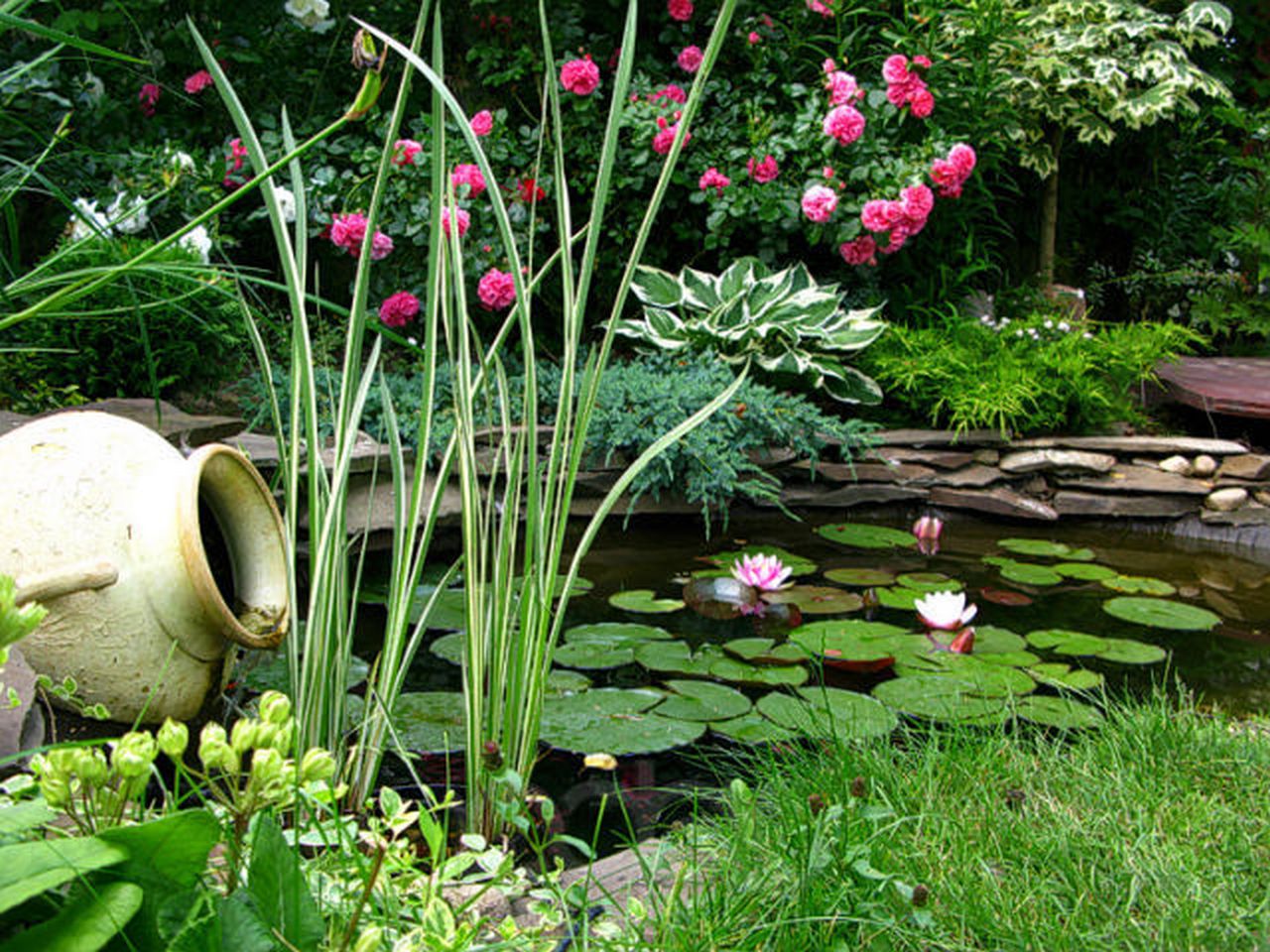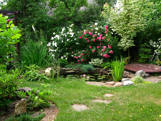 Таня,а если все это отнести подальше от пруда,чтобы была возможность у нему подойти, и перед высокими растениями совсем немного ирисов или еще что Нужно будет плясать от того,что посадишь на задний план. Если хвойные,то низкорослые можжевельники или сосны горные. Между ними на лутрасил камешки- подход в водоему.