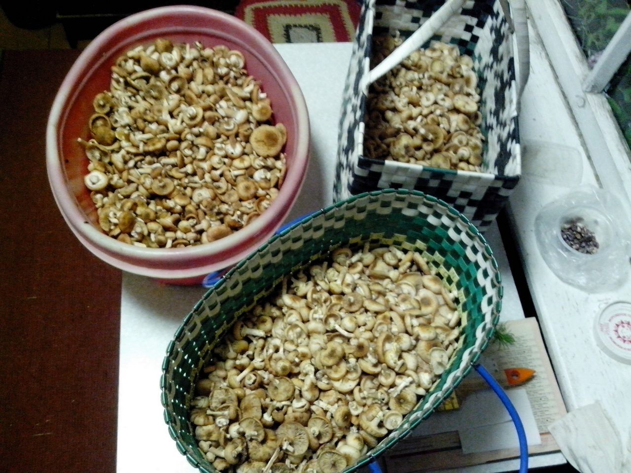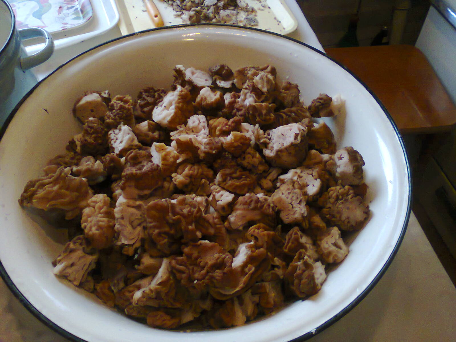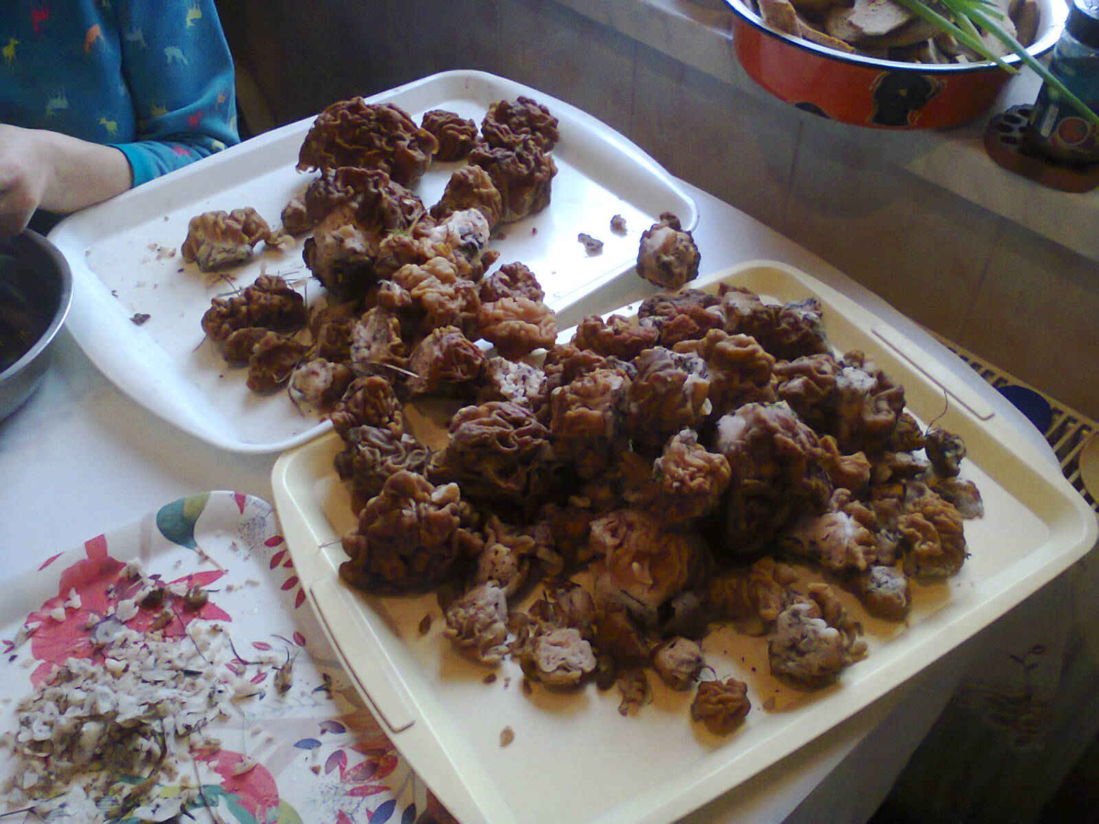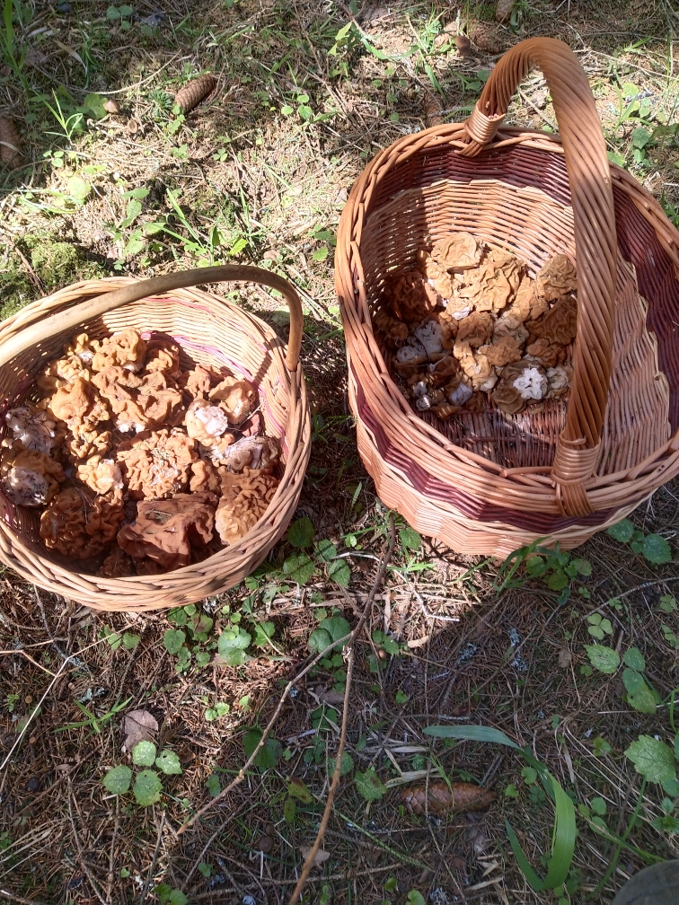 У нас пик сбора строчков уже прошёл, вот фото от 26 апреля, собирали ещё неделю, потом переростки и всё, перерыв, ждём летних опят и колосовиков.