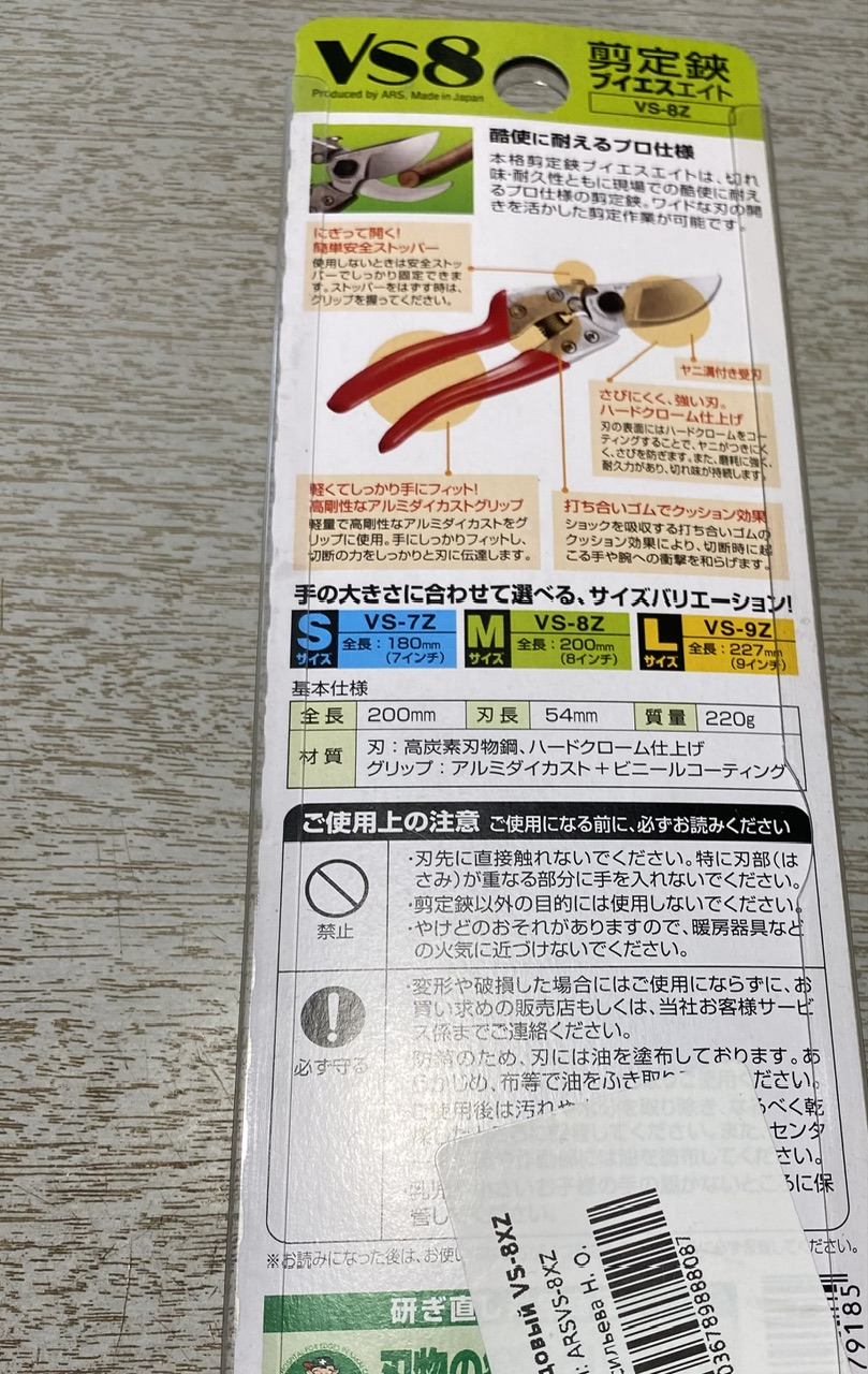 купил на озоне ARS VS-9Z за 6158 руб.ARS VS-8Z / ARS VS-8XZ - длина секатора 200 мм, размер M