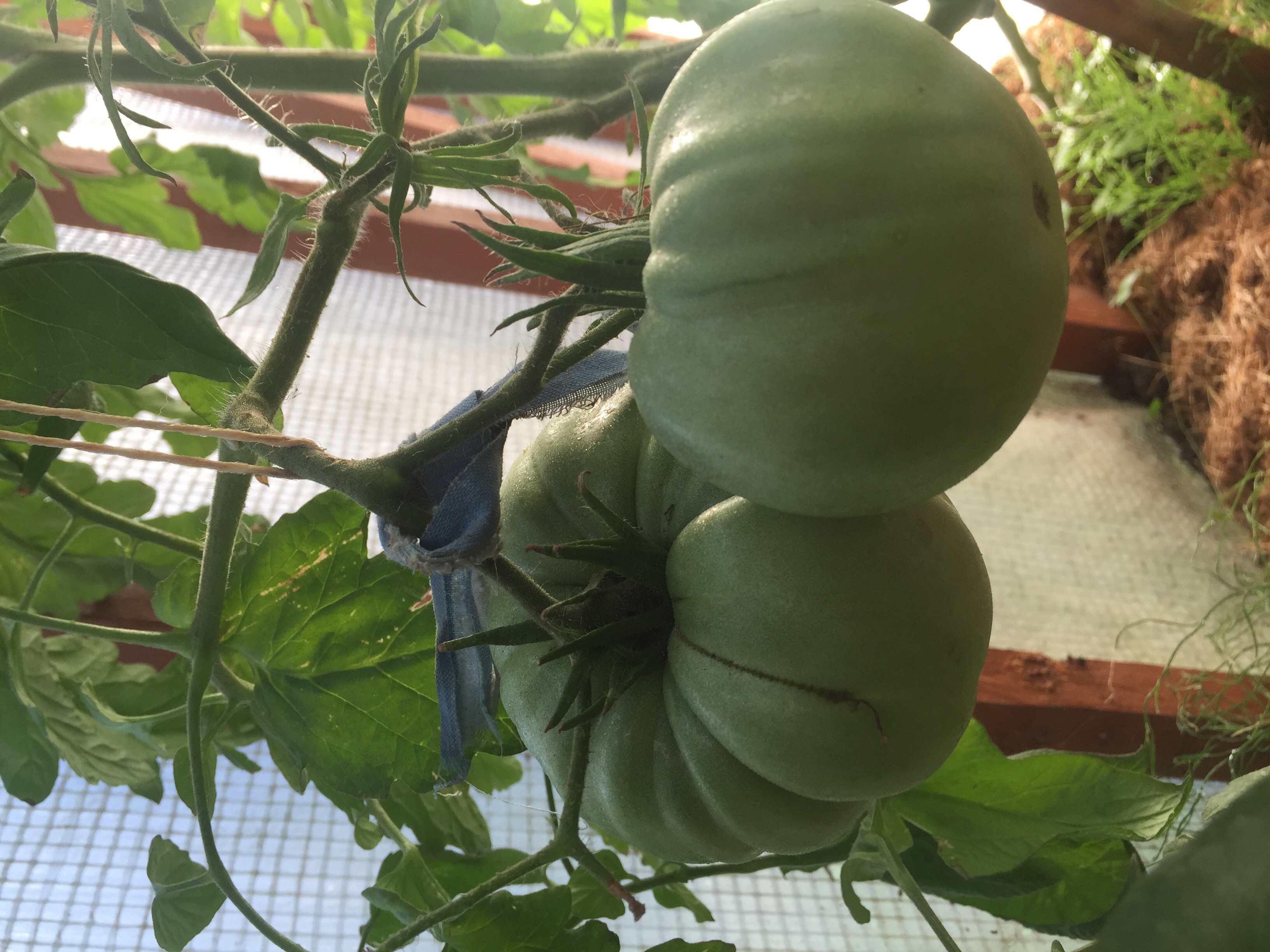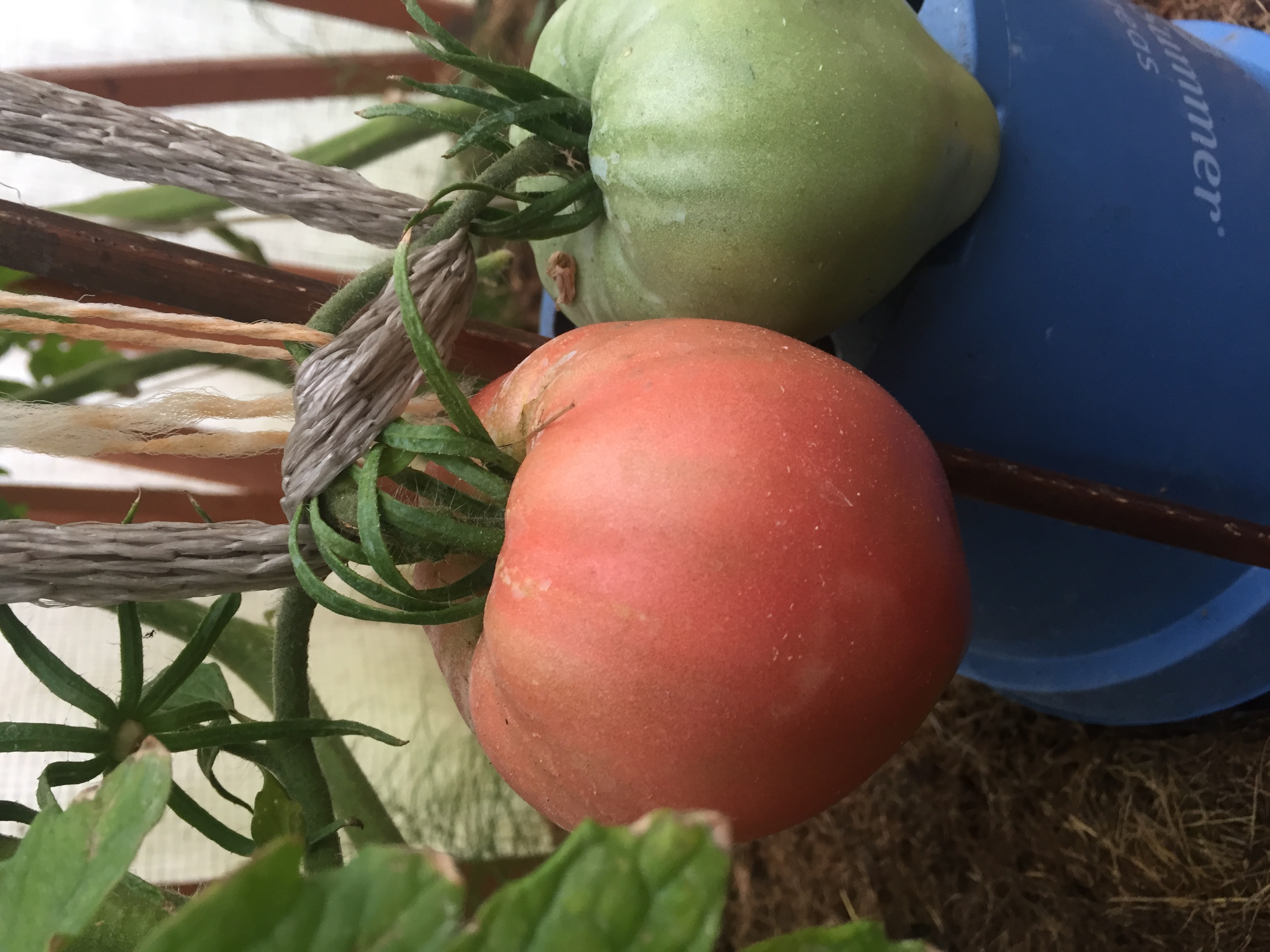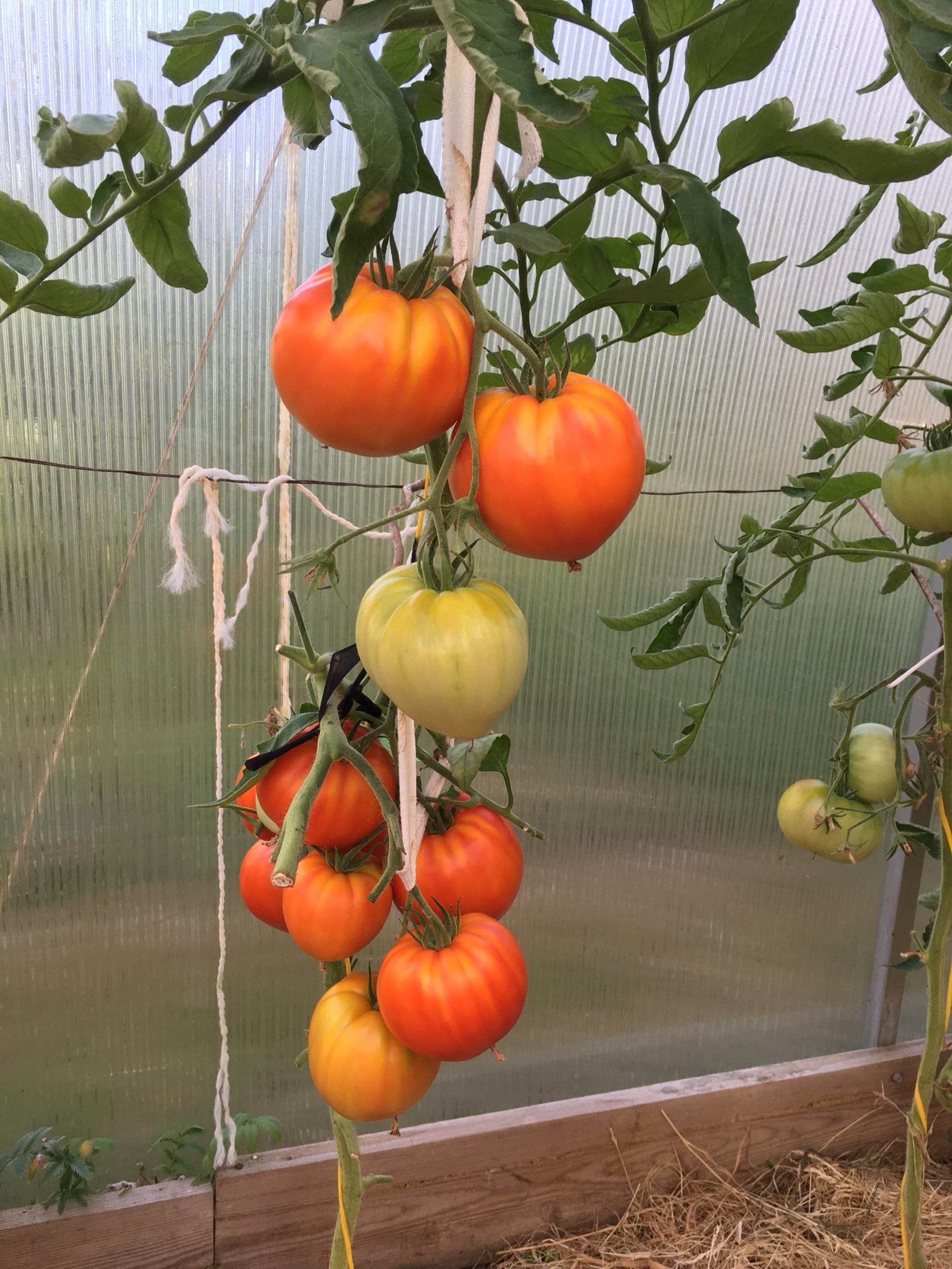 В мае высадил Де-Барао в пристенную (прифундаментную) тепличку, после того как кусты подросли и уперлись в крышу я её снял, а кусты подвязал к перекладине. Первый помидор покраснел в конце июня, ну срывали по мере созревания и остальные.