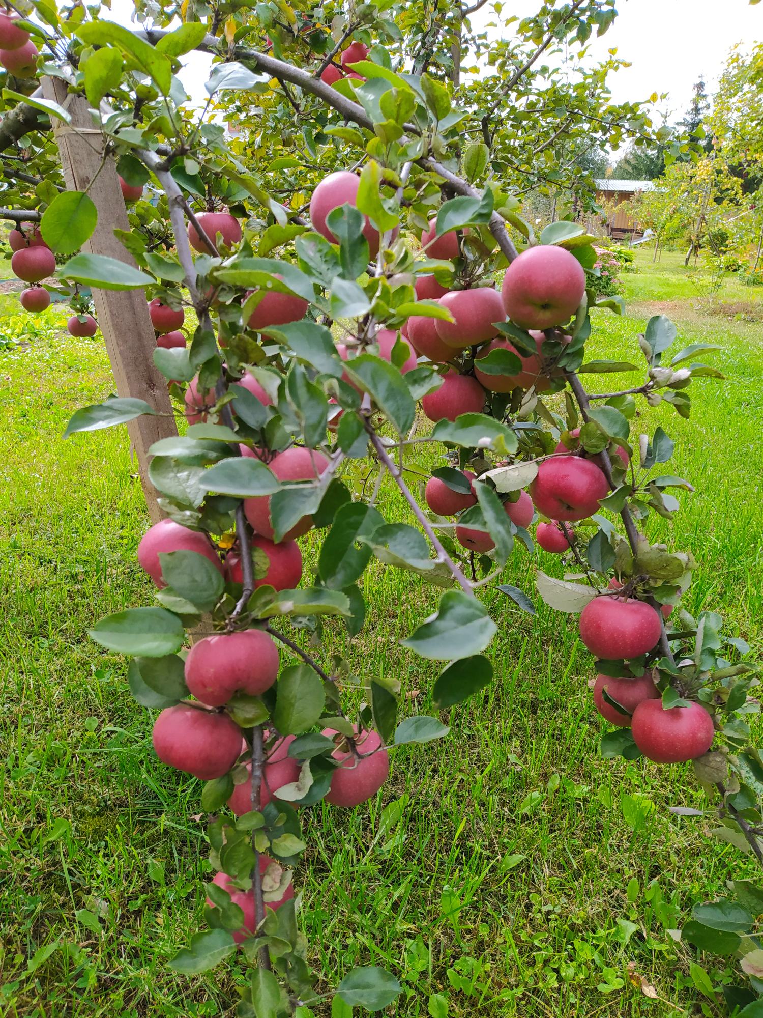 Яблоки красивые крупные, но для еды больше нравятся поплотнее.