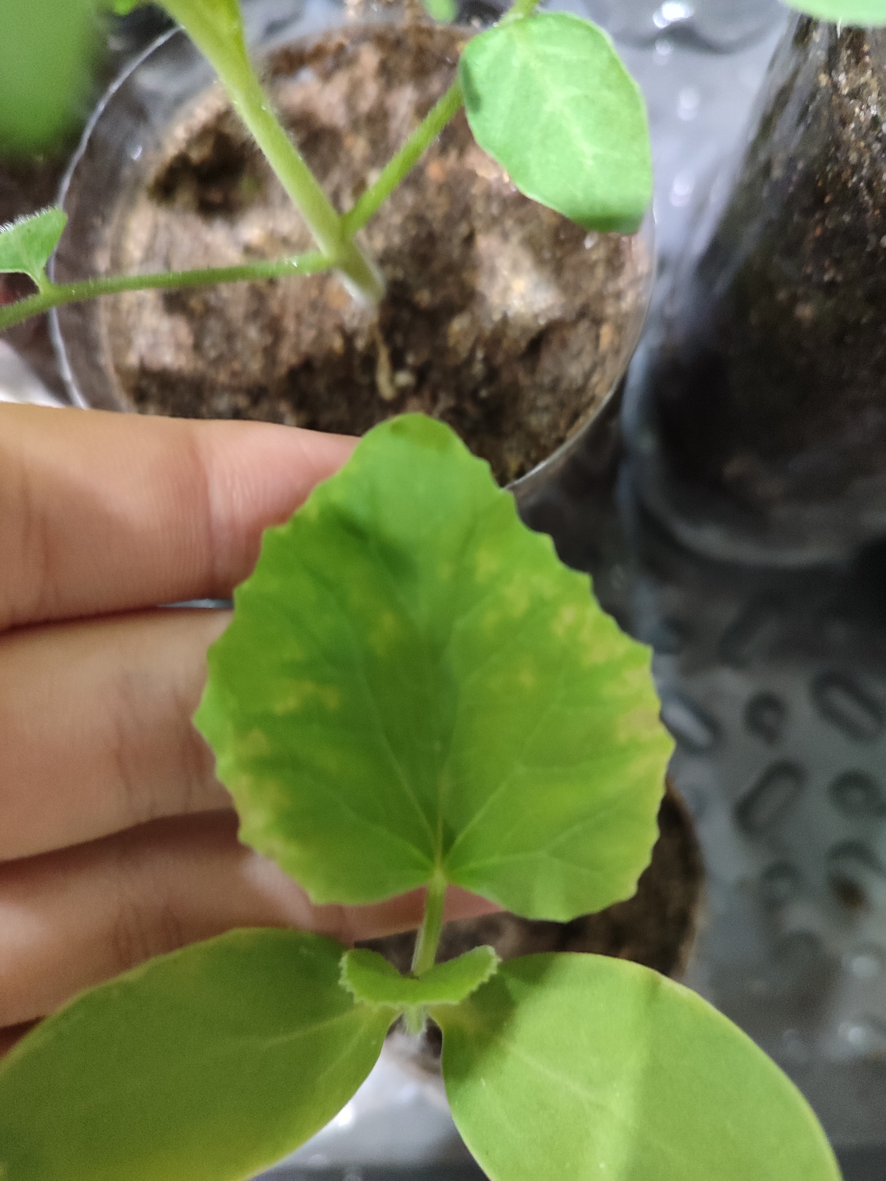 Тогда было бы начало потери тургора листами.Но этого пока не видно. Такой хлороз -это скорее всего связан с питанием. Предположения есть, но нет инфы по питанию изначальному(что вносилось, чем потом кормилось).
