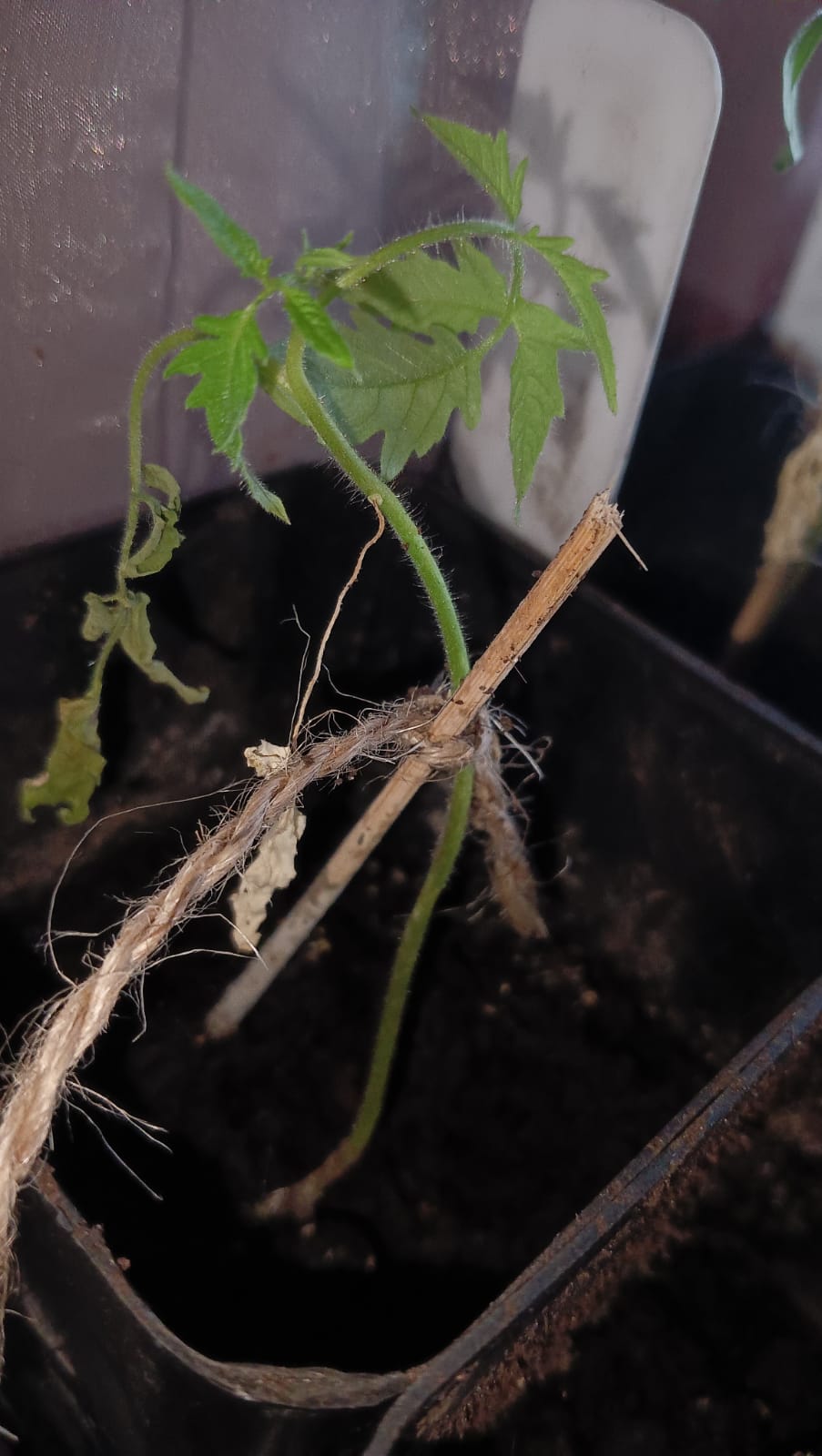Доброго времени суток! Прошу помощи! Подскажите пожалуйста, что с моими саженцами: сорта из серии «истинный север». Посажены в 10 числах марта. Вытянулись из-за того, что в рассаднике температура меньше 25 не опускается. Листья закручиваются- это перелив или недолив? Или питания не хватает? Грунт покупной, смешан с садовой землей и вермикулитом. На всех остальных сортах листья ведут себя нормально. Скручиваются только те, что с картофельным листом. За всё время ничем не подкармливались..