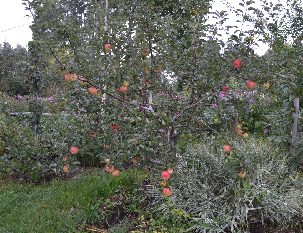 Часть яблок уже упало. Рановато для зимнего сорта.