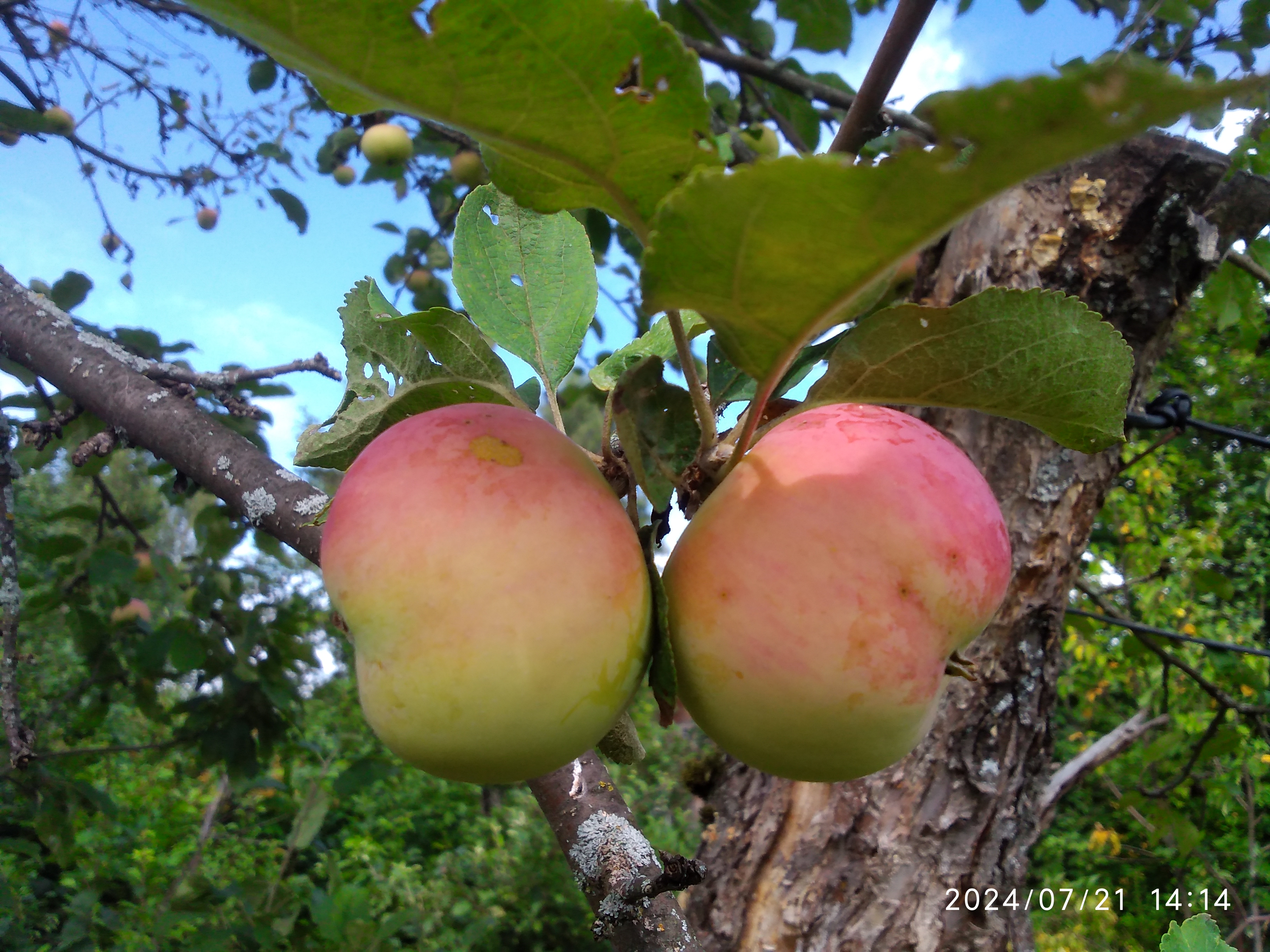 Старая яблоня в саду, верхушка постепенно засыхает. Яблоки созревают в конце июля - начале августа, сильно осыпается, от яблок есть небольшой аромат. Сам определяю как Грушовку московскую, прошу подтвердить или опровергнуть.