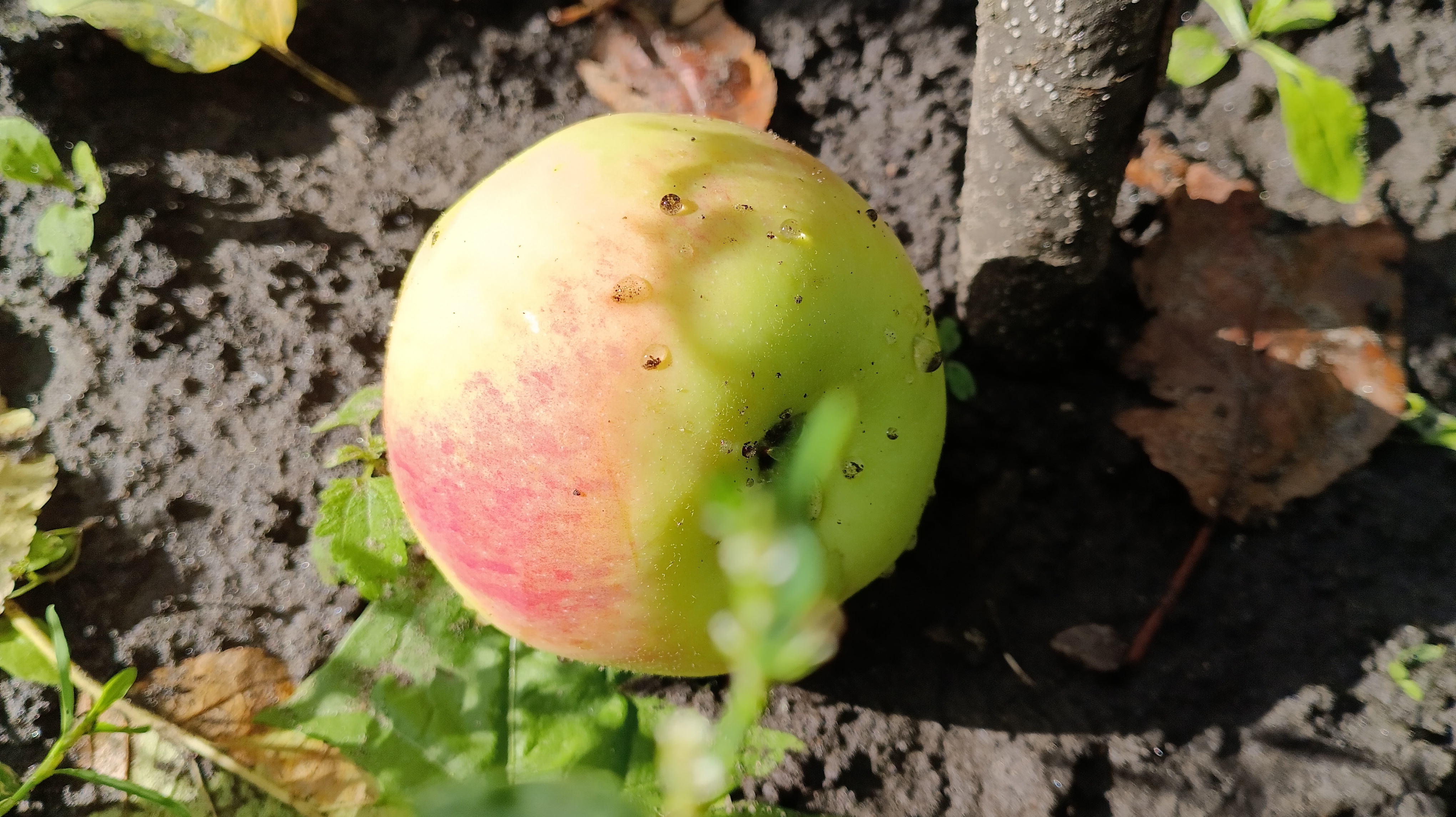 Добавлю ещё фото.вчера опало одно яблоко, сегодня после сильного дождя ещё одно.