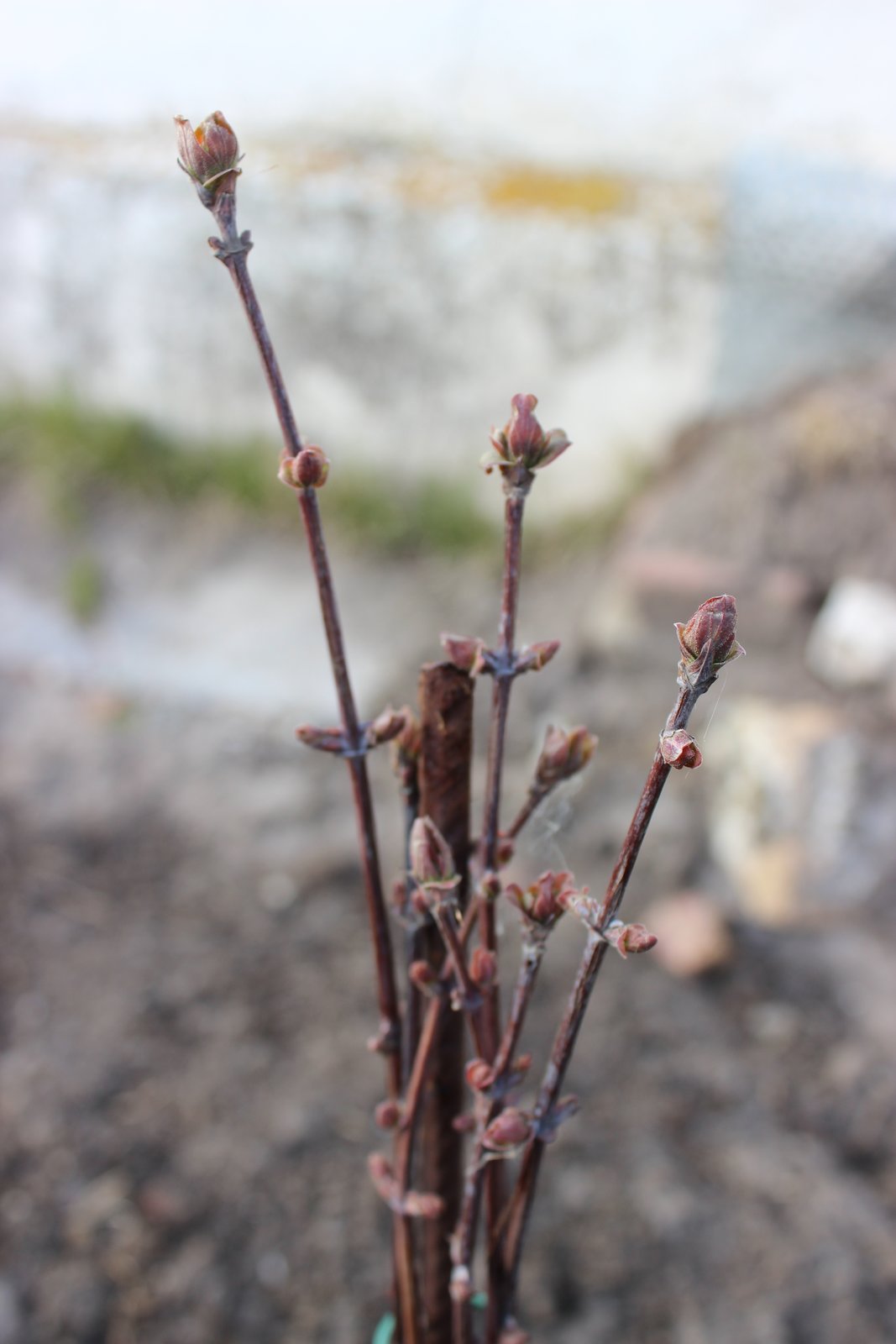 Воткнул я куст (сантиметров 20 высотой, несколько побегов) совсем без корней в горшок с влажной землёй, поставил его в гараж с окном и раз в месяц по чуть-чуть поливал. Берель явно укоренилась. Понятно, что корешки пока слабые, листиков сейчас толком выдать не может, только мелкие, но тем не менее и листья и даже цветки она выдала, а без корней бы уже засохла. Цветки оборвал, но количеством бутонов впечатлился. Стало понятно, почему она считается самым урожайным сортом.