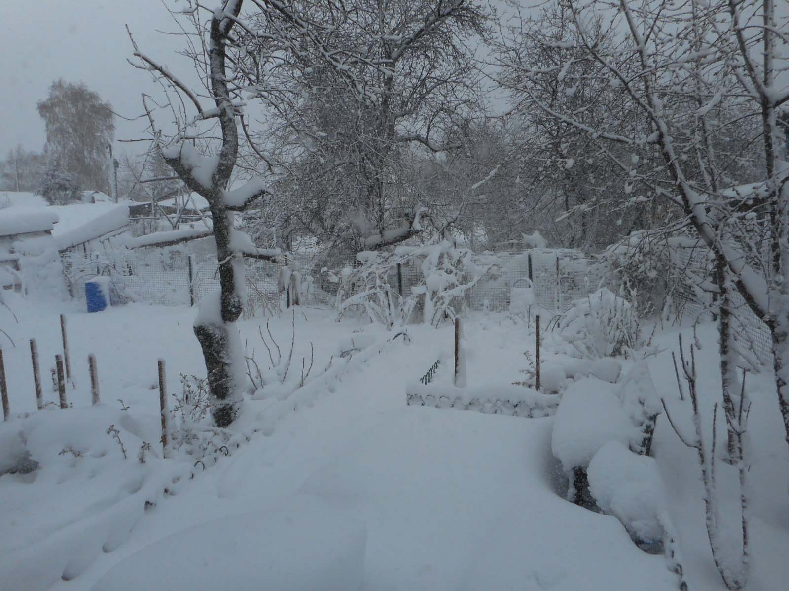 Вот теперь весна. 10 апреля жара и солнце, на солнце +20. Снега понятно давно нет. Земля высохла и пересохла. Народ разделся, копошится на грядках, сеют кто во что горазд. 11 апреля тоже тепло, солнце, но сильный ветер. 12 апреля воскресенье. Весь день ветрище-холодище, снег валит. К вечеру совсем уж зимняя пурга, снега намело по колено и выше, 50 см примерно. В ночь до -5. Откапывала свои жимолости. Снег мокрый и тяжеленный, все кусты под его тяжестью полегли. 13 апреля понедельник – теплее, но снег все еще лежит. Последние фотки от 14 апреля. Цветочки, конечно, не в тему. Просто для полноты картины.