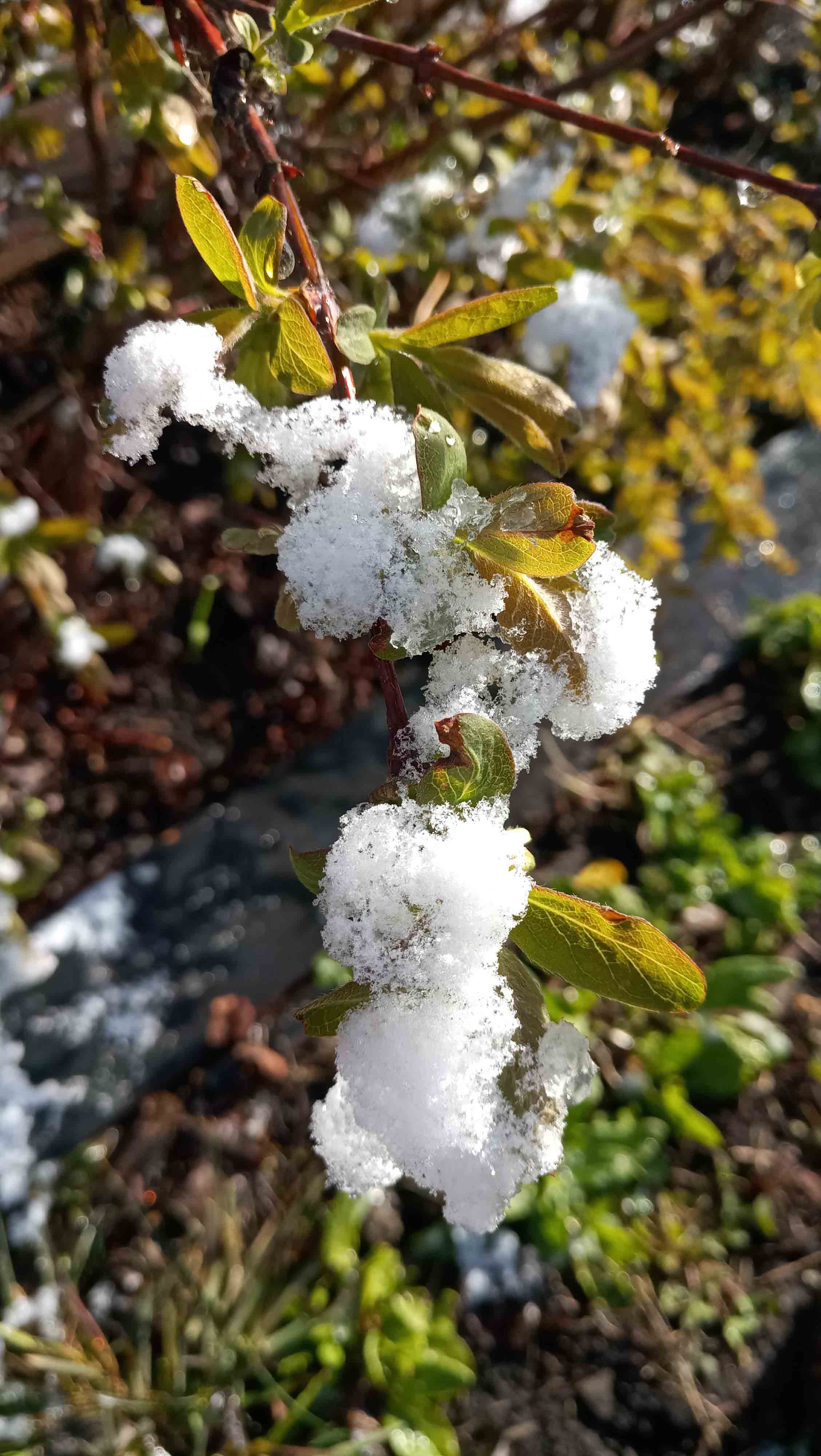 Больше боялась не того, что замерзнут, а что ветки поломаются. От опор то уже отвязала. Молодые побеги кустарников под тяжестью снега плашмя легли на землю. Сейчас поднялись. Видимых повреждений не много, но в течении лета еще могут проявиться. Я еще в прошлом году задавалась вопросом, как лучше поступать с надломленными зимой веточками жимолости. Если их не обрезать сразу, они восстанавливаются постепенно, жимолость - живучка. Вот только есть ли в этом смысл ? Может всё слабенькое нужно вырезать, пусть новые веточки нарастают. Надломленные веточки как и здоровые пытаются урожай дать, но видно, что не тянут.