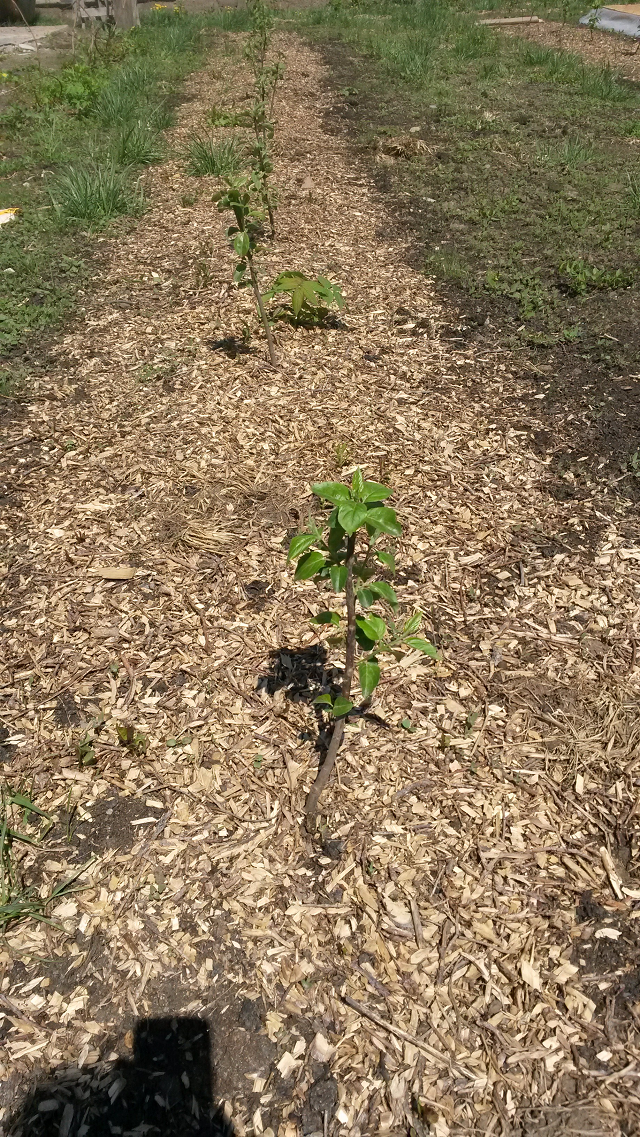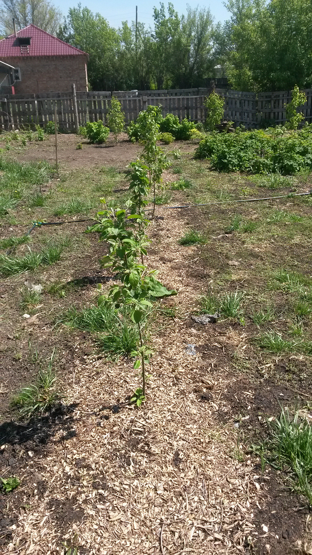 Саженцы посаженные в прошлом году. Верхнее фото весенней посадки, нижнее осенней. Угнетения из-за мульчи не наблюдается. Только-что научился уменьшать фотографии. Поэтому не мог выложить в прежнем посту.