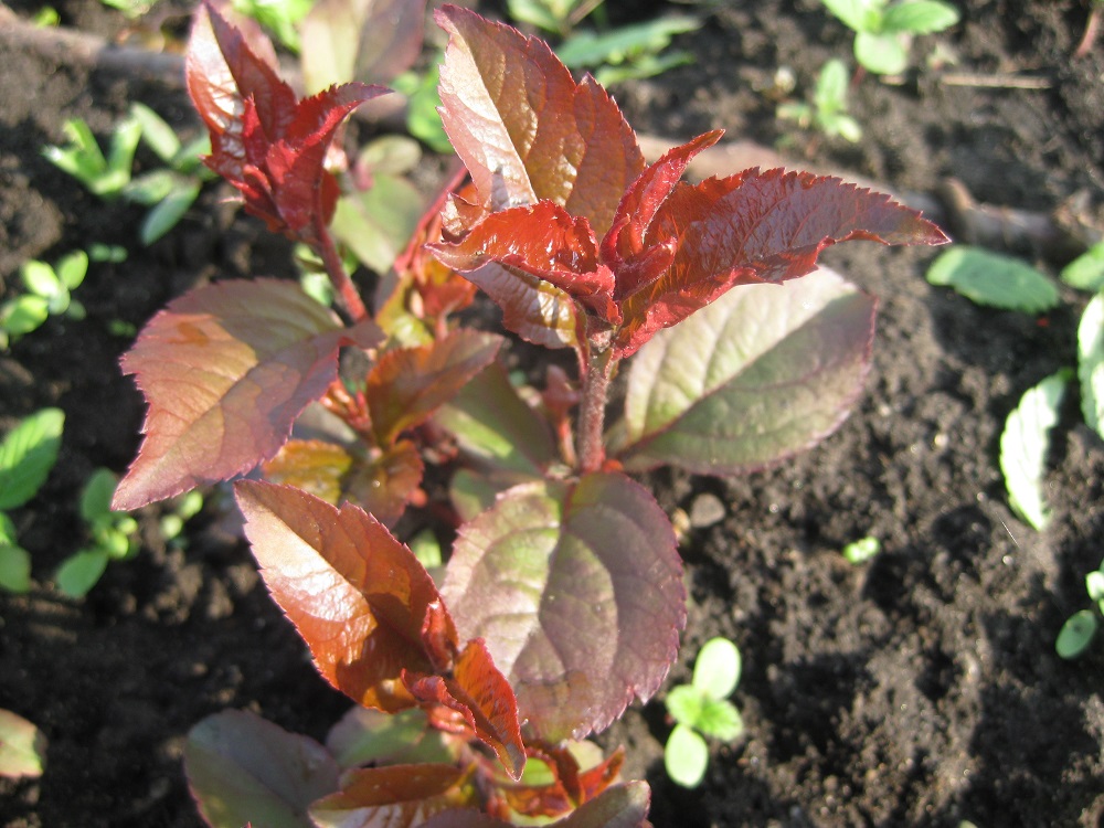 "54-118. Широко распространенный в средней полосе России подвой. Был выведен в Мичуринском институте профессором В. И. Будоговским. Листья имеют антоциановую окраску. (Существует так же зеленолистный клон) "