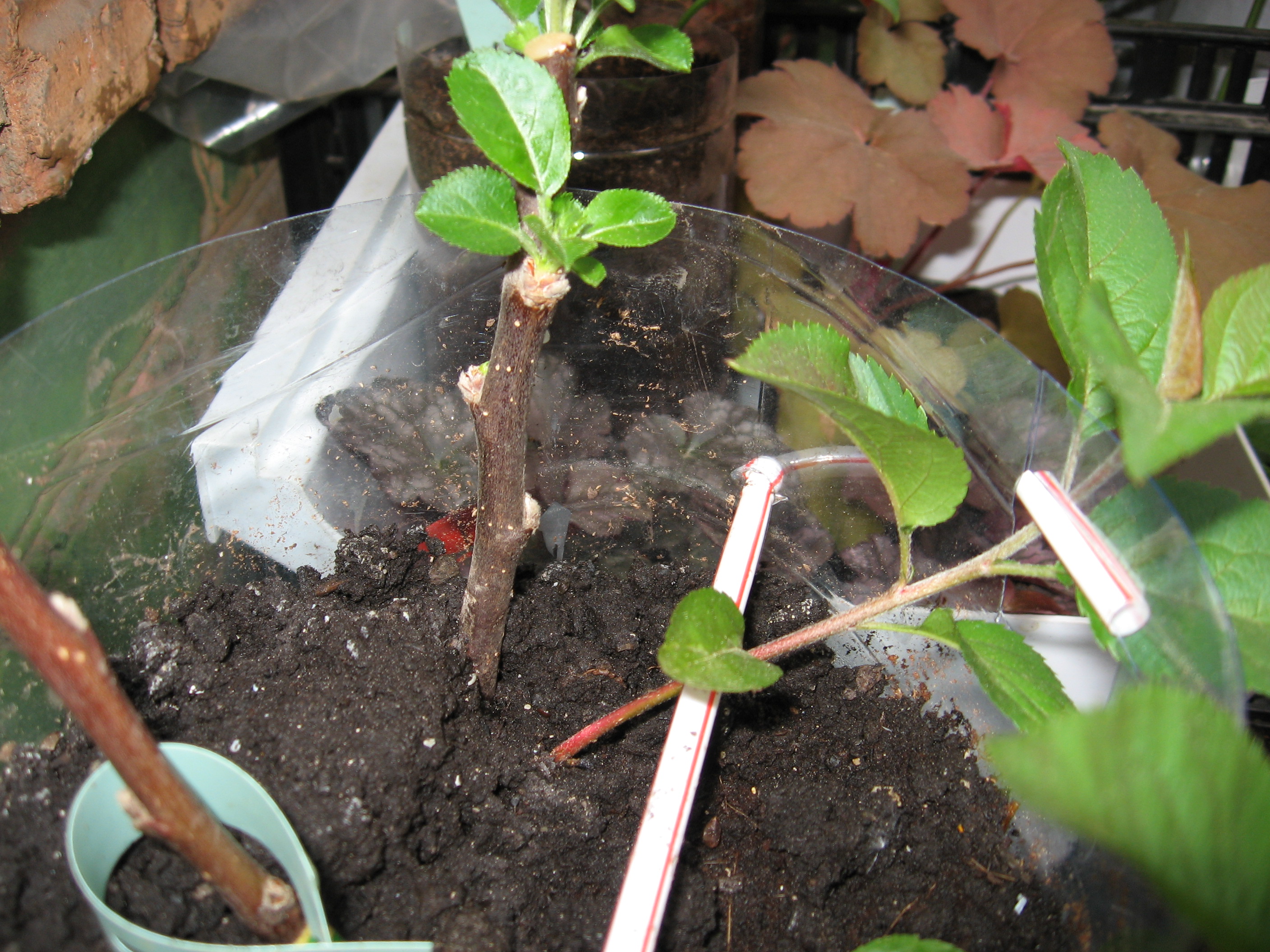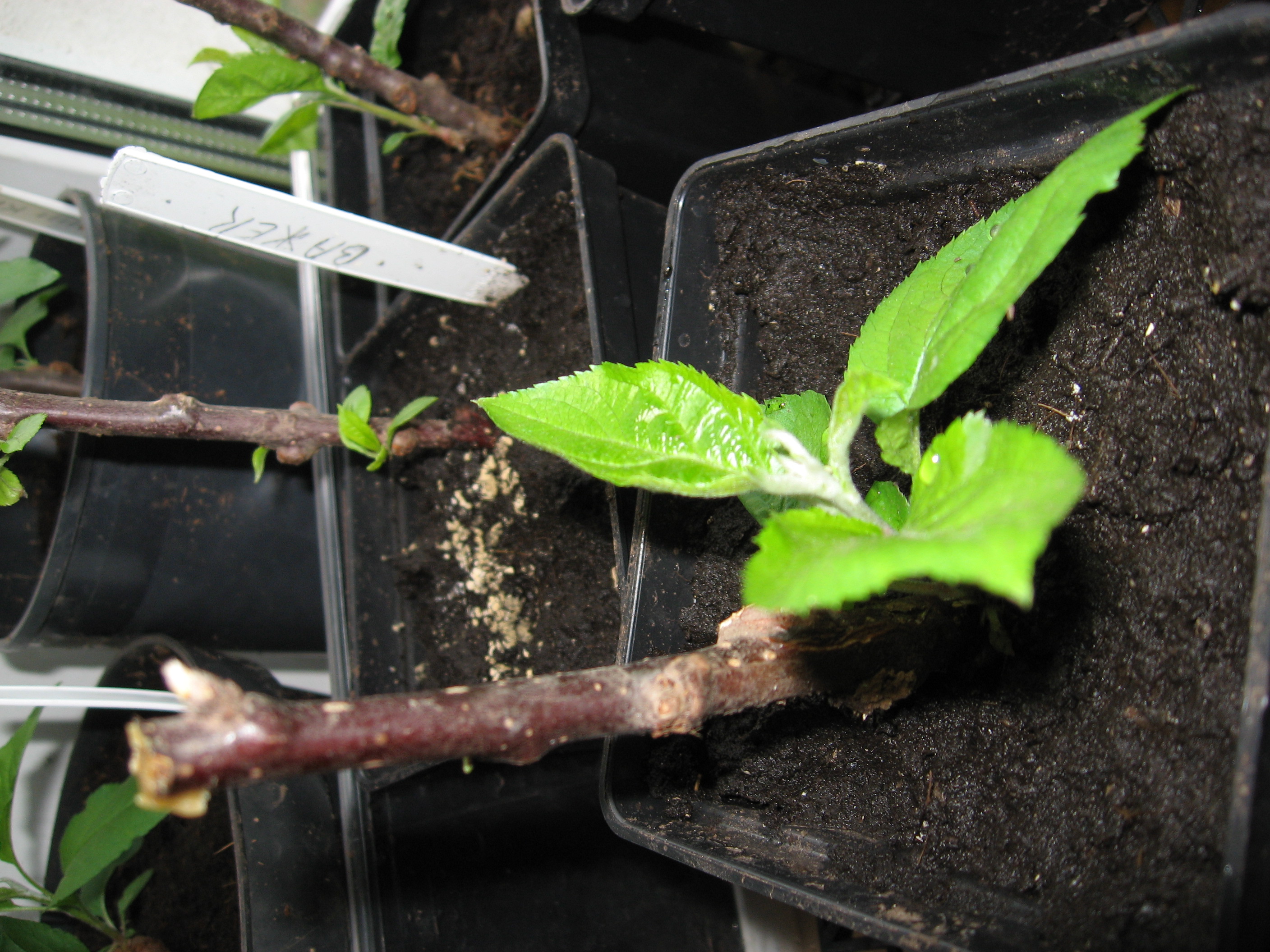 Нет...корни желтого цвета были ....с 54-118 а у МБ красно-коричневые ...ростки пока одинаково зеленые, листья округлые породистые у обоих видов . Те подвои что из черенков укоренились имеют другие листья (пока очень маленькие ) и цвет коры черенков разный - коллекция однако собираетсяyri писал(а):Ну никак не могут из красных корней получаться зеленые росточки. При отсутствии света они скорее будут белые. А вот зелеными они становятся в дальнейшем на свету.irisovi duh писал(а):...пока росточки от корней зеленые , но комнатные условия не способствуют пигментации , возможно на улице пигментация проявится.