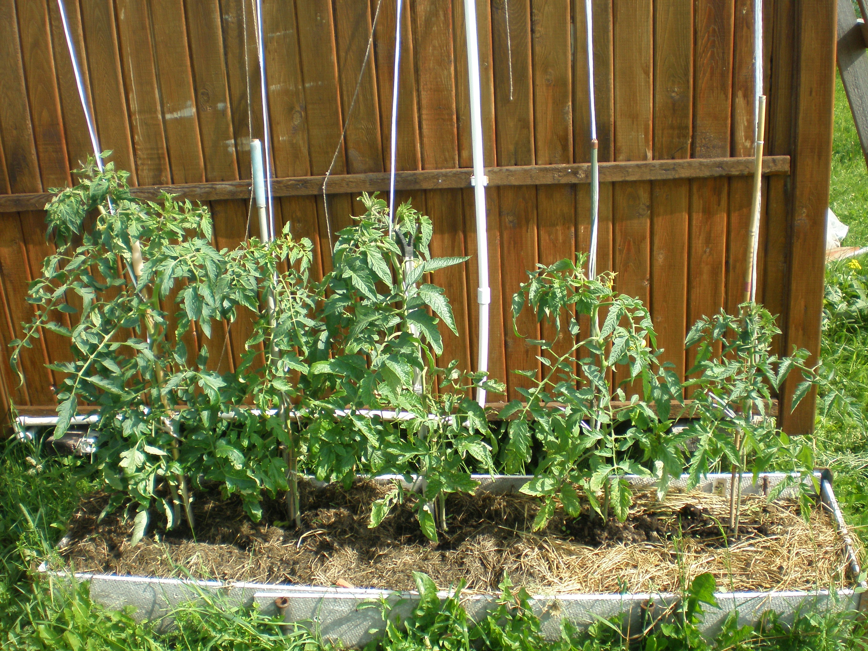 Мои томатики-вроде неплохо себя чувствуют.На маленькой пристенной огороженной грядочке-поселилась Берберана,любезно предоставленная для этого эксперимента Толей (Karamba) 2 шт. Еще Пинк парадиз тоже 2 шт,и единственный взошедший Буран. Ко всем протянули веревки-подвязки с крыши душевого домика.Теперь вижу,что растения очень мощные,и тесновато наверно им.Учту на будущее. Пинк парадиз уже по кисточке завязали размером с грецкий орех, Берберана только только завязывается(с горошинку пока).Буран вообще отстающий( крайний справа)