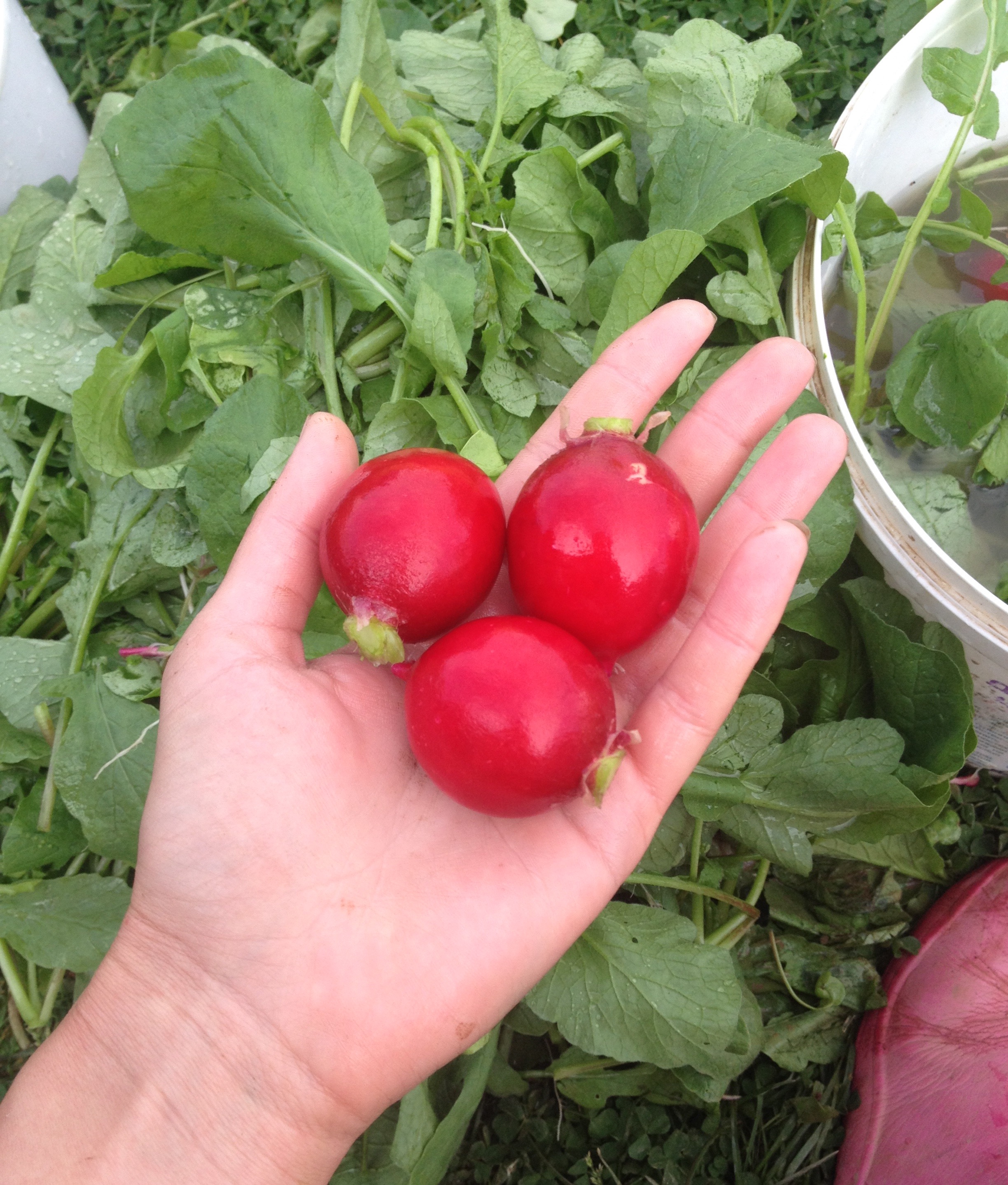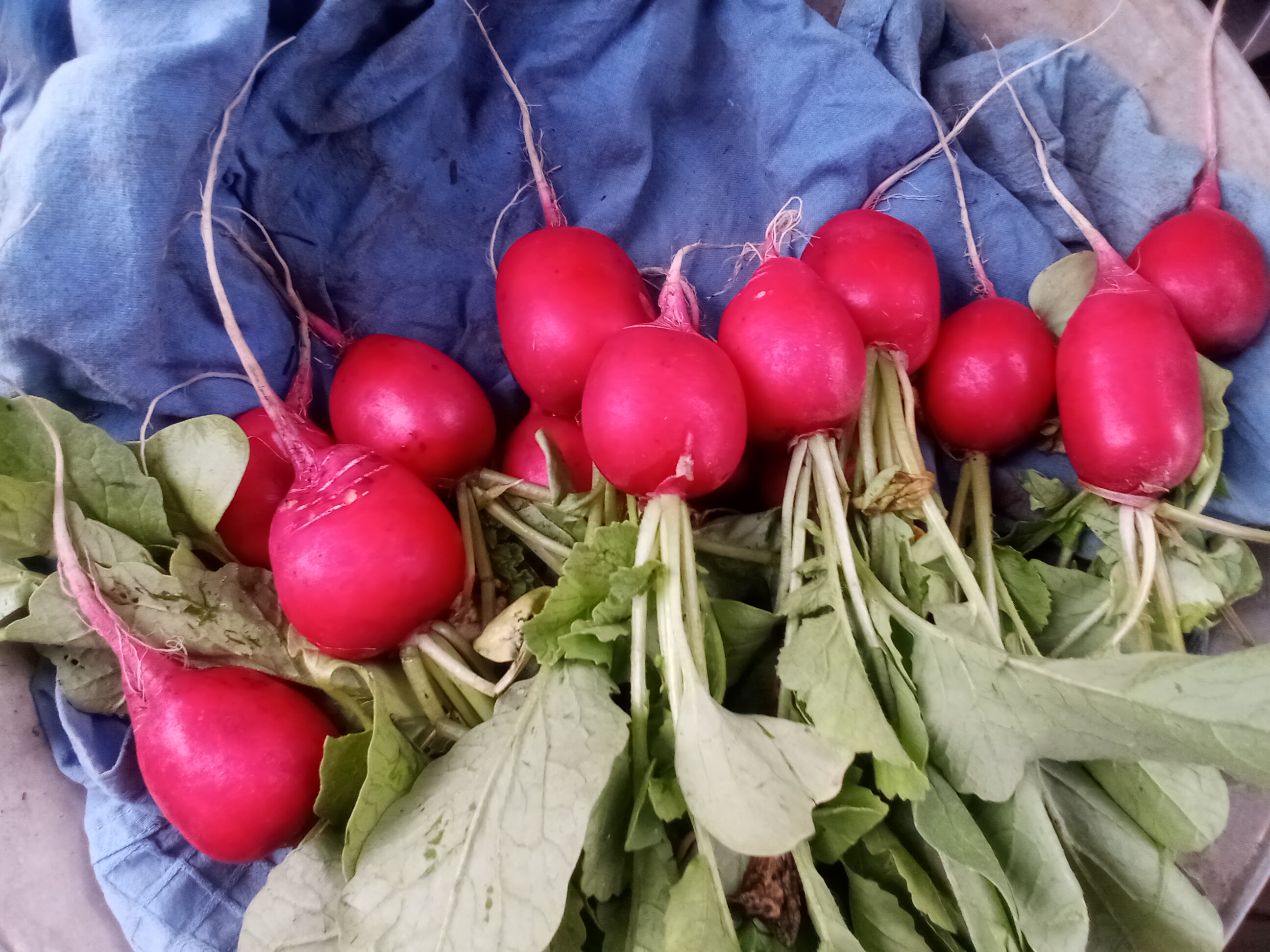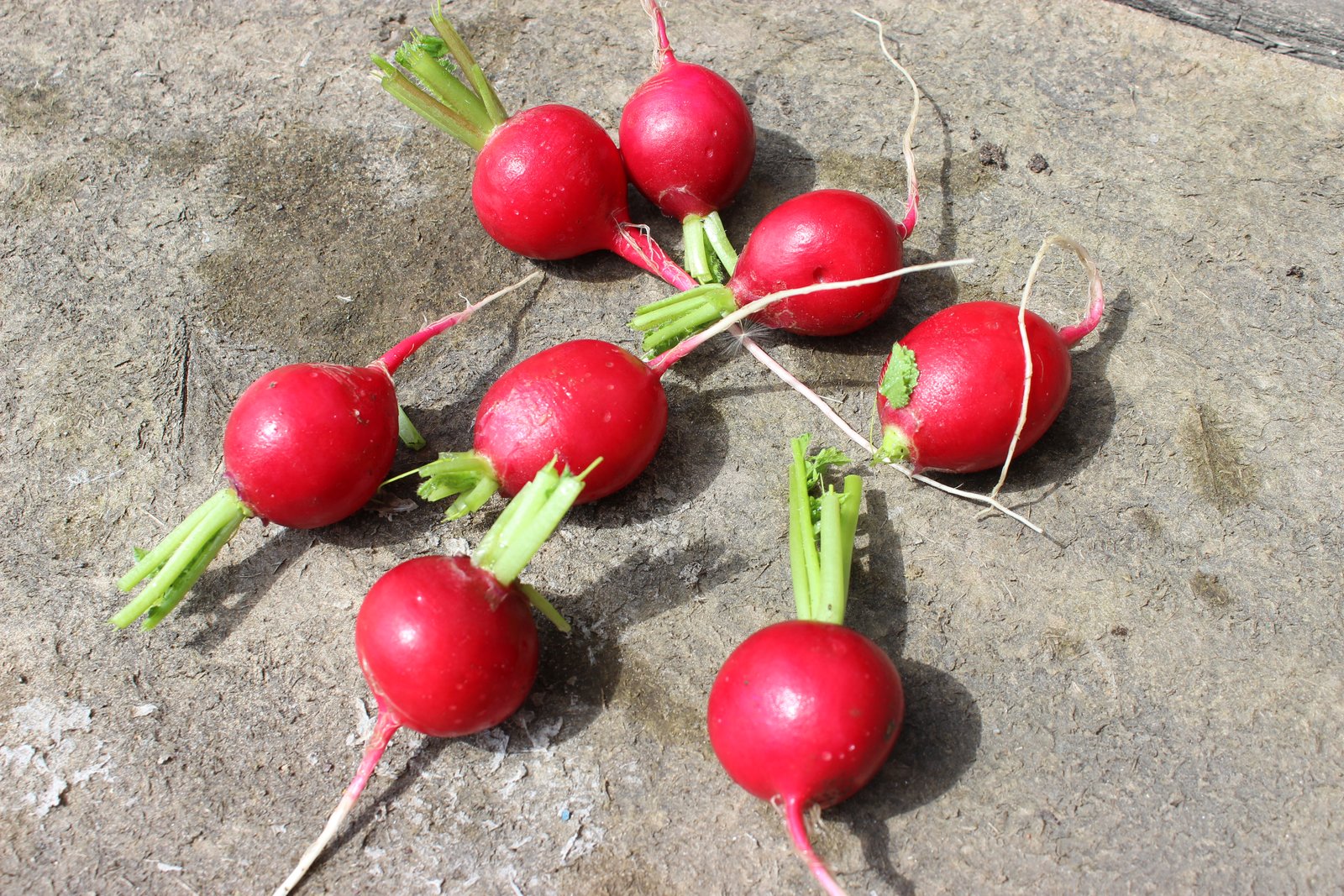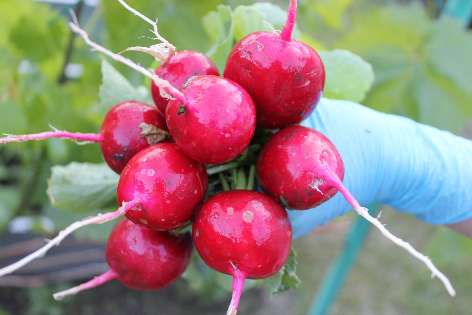 Помидоры градом разбило, зато редиска поспела. Хоть какая-то радость в огороде найдётся. Рондар, посев 23 мая