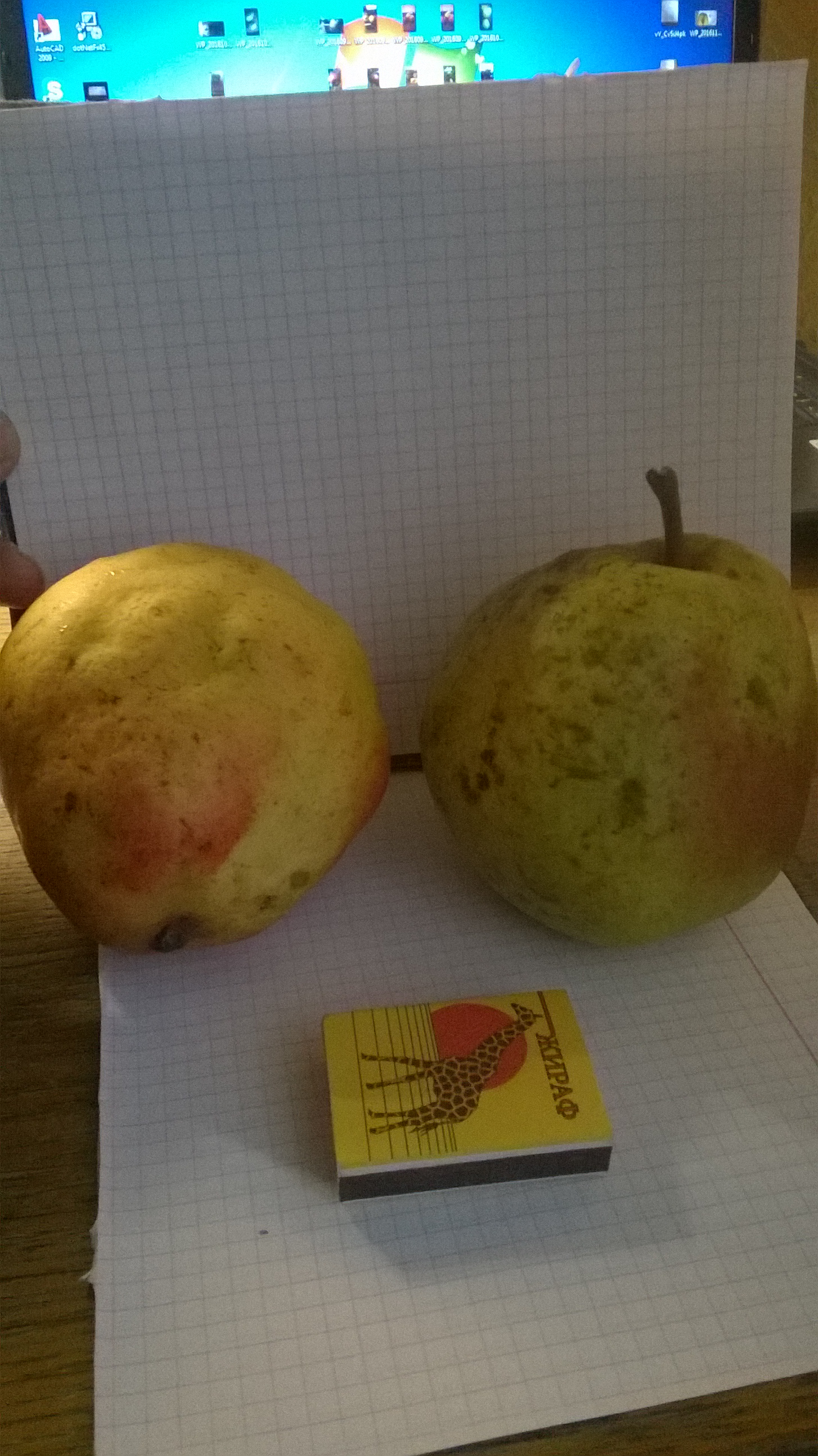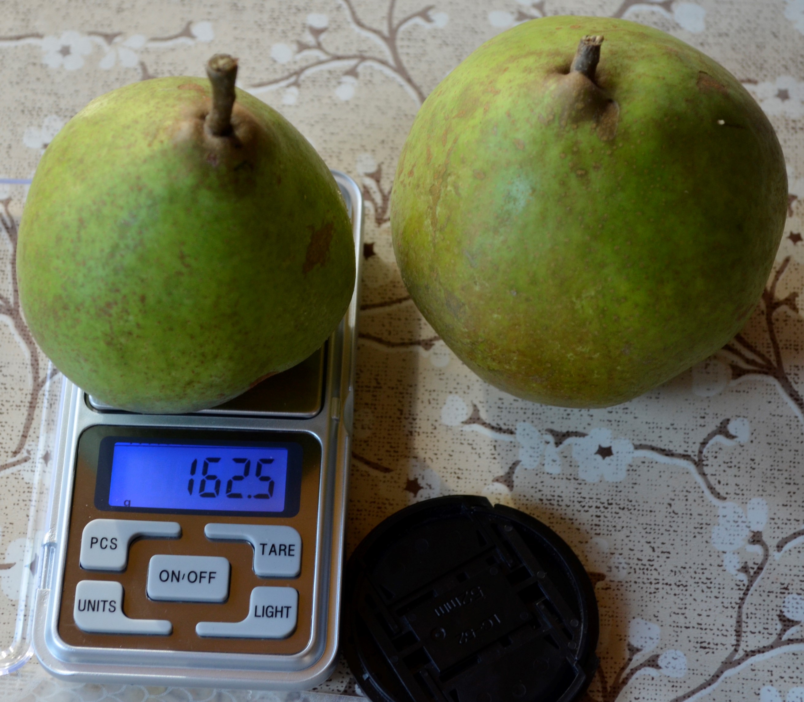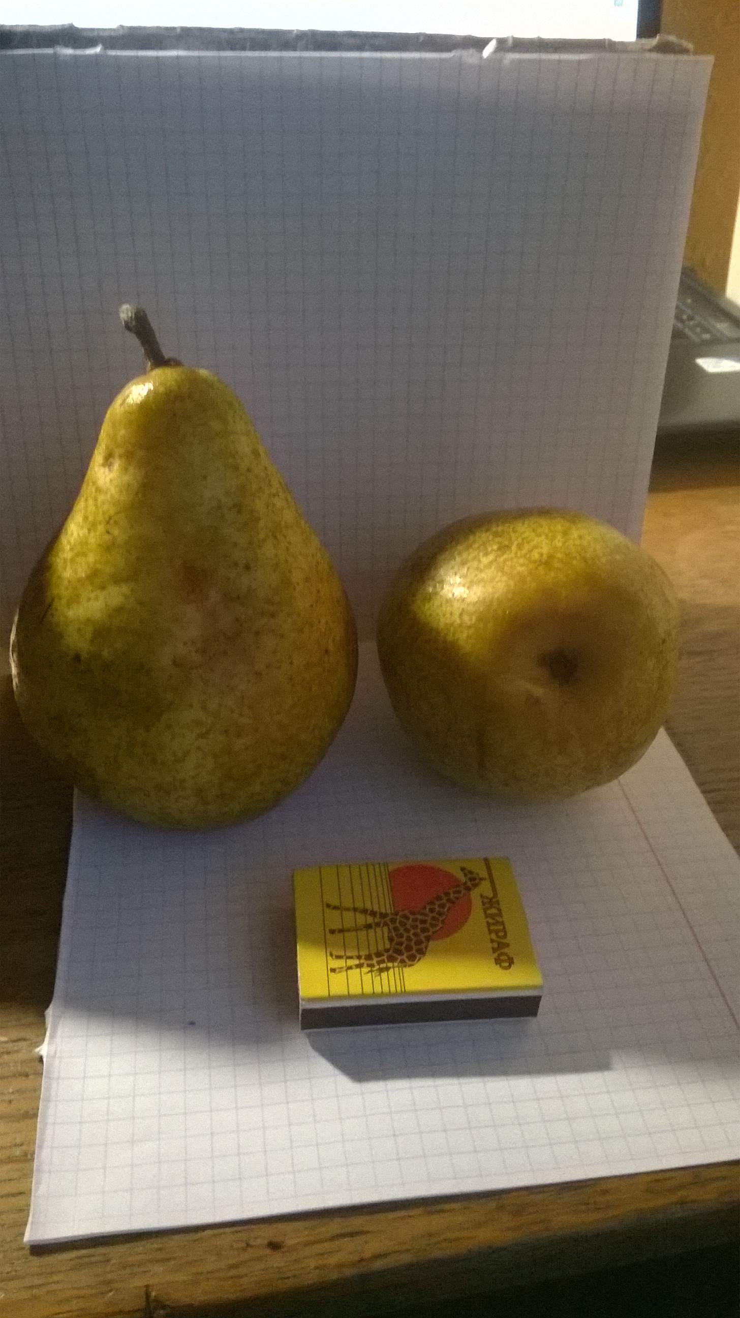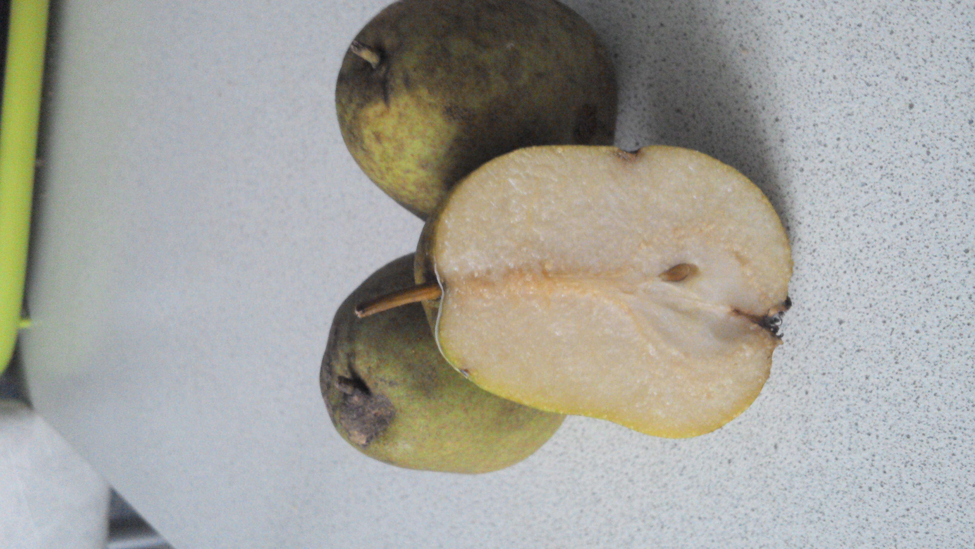 Помогите определить сорт груши.Покупала четыре года назад как Ладу,но явный пересорт.В этом году только два яблока созрело.Одно вчера сняла на пробу,мякоть хрустящая,вкусная