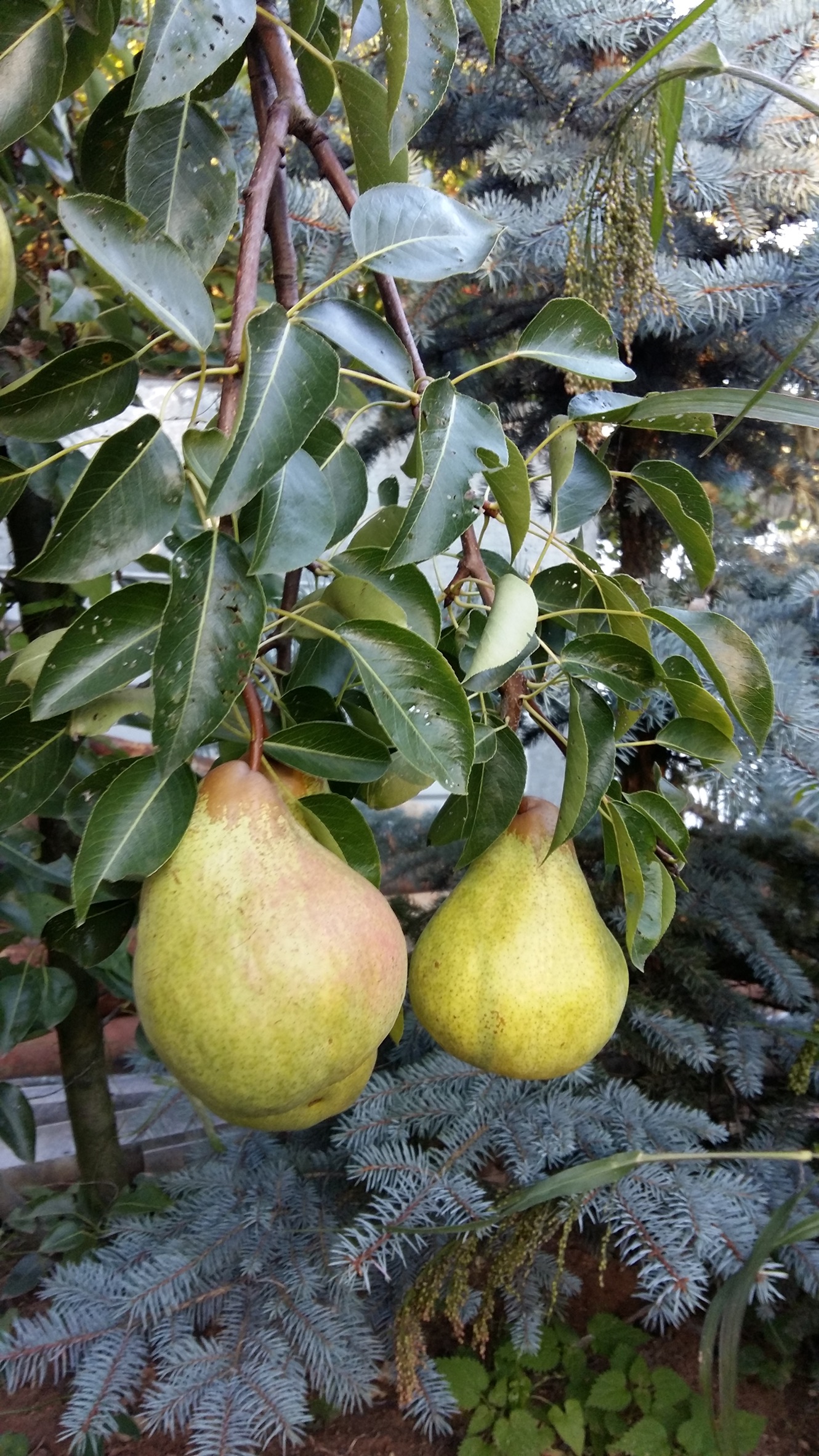 Добрый день,уважаемые садоводы! Помогите определить сорт грушь.Покупался в свое время из Мичуринского плодопитомника , осенью 2005 г.Верх вымерз.Был обрезан на обратный рост.Первый раз цвела в 2015 году.Плоды не завязались.Цвела очень обильно в 2016 и 2017 .Плодов немного.Висят до самых заморозков.При съеме, груши очень твердые, но сладкие.При лежке около месяца, приобретают желтый оттенок, становятся очень сладкими и маслянистыми.Ароматные. Очень вкусные.