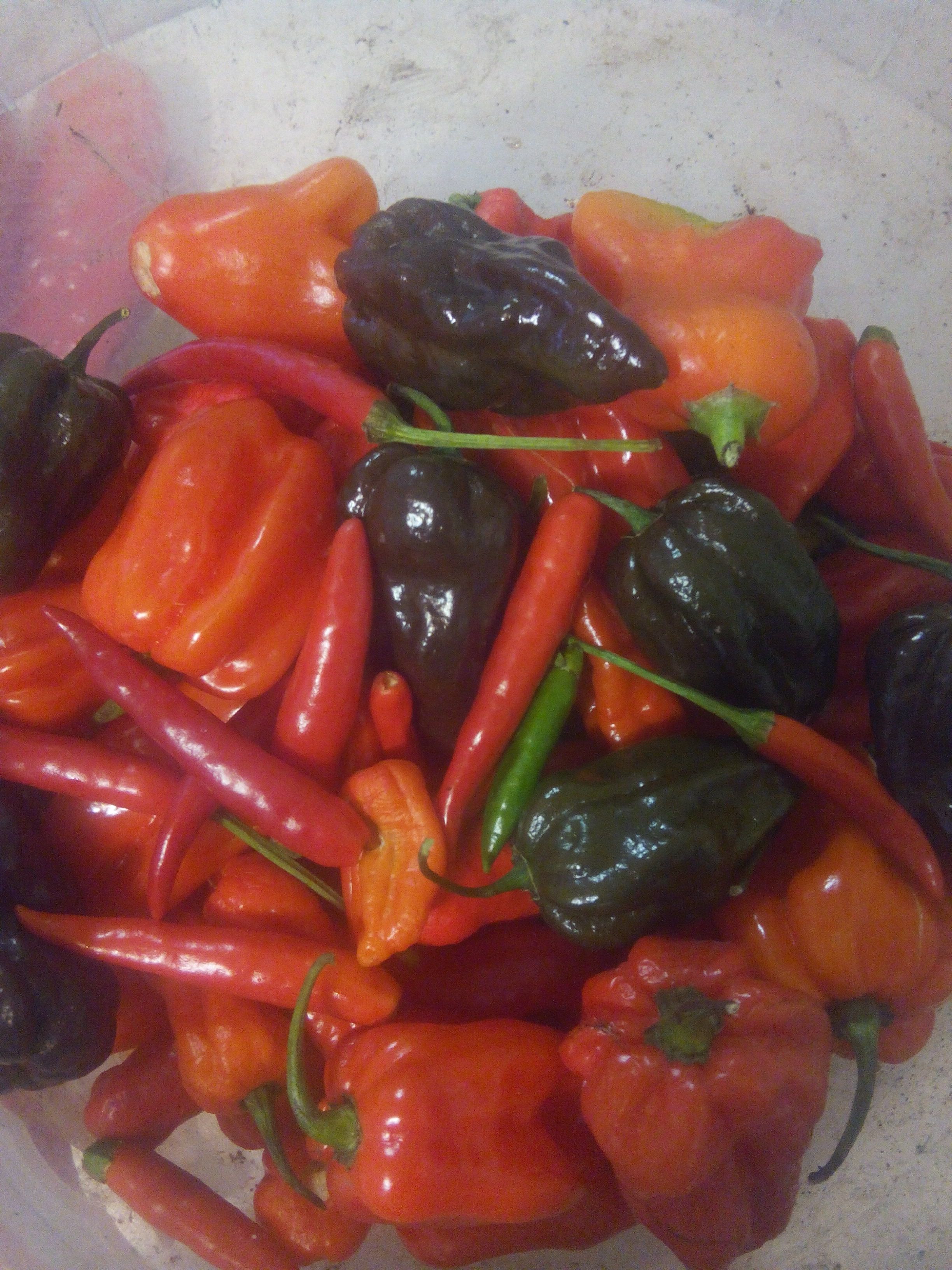 У меня есть Хабанеро, Халопенье и еще какие-то страшненькие, кто захочет принесу на встречу, прямо в перчинке, не хочу вытаскивать, начинаю кашлять