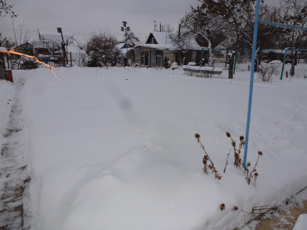 Снега прибыло. Но из-за перепадов температур: на неделе было и -25-23 град С, сейчас - 5град С и ветров произошли какие-то проблемы с дверями у садовых домов. Вчера сосед на линии "долбал" молотом по двери, чтобы ее вернуть в исходное состояние, а сегодня мы, так как я ее вчера еле смогла закрыть.