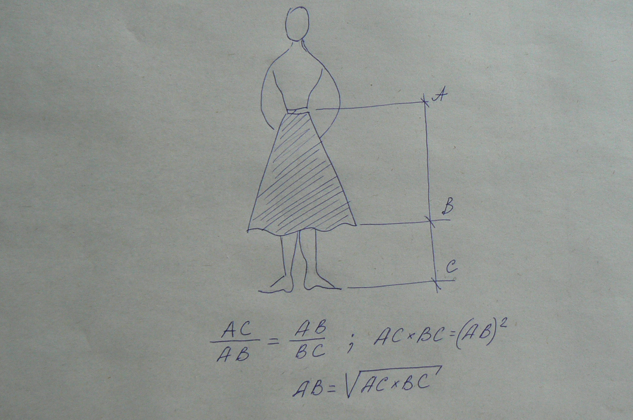 Если юбку шьёшь, тоже можно применить - получишь вещь, пропорциональную своему росту. "Золотое сечение" гласит: отношение длины всего отрезка к бОльшей его части равно отношению бОльшей части отрезка к меньшей.