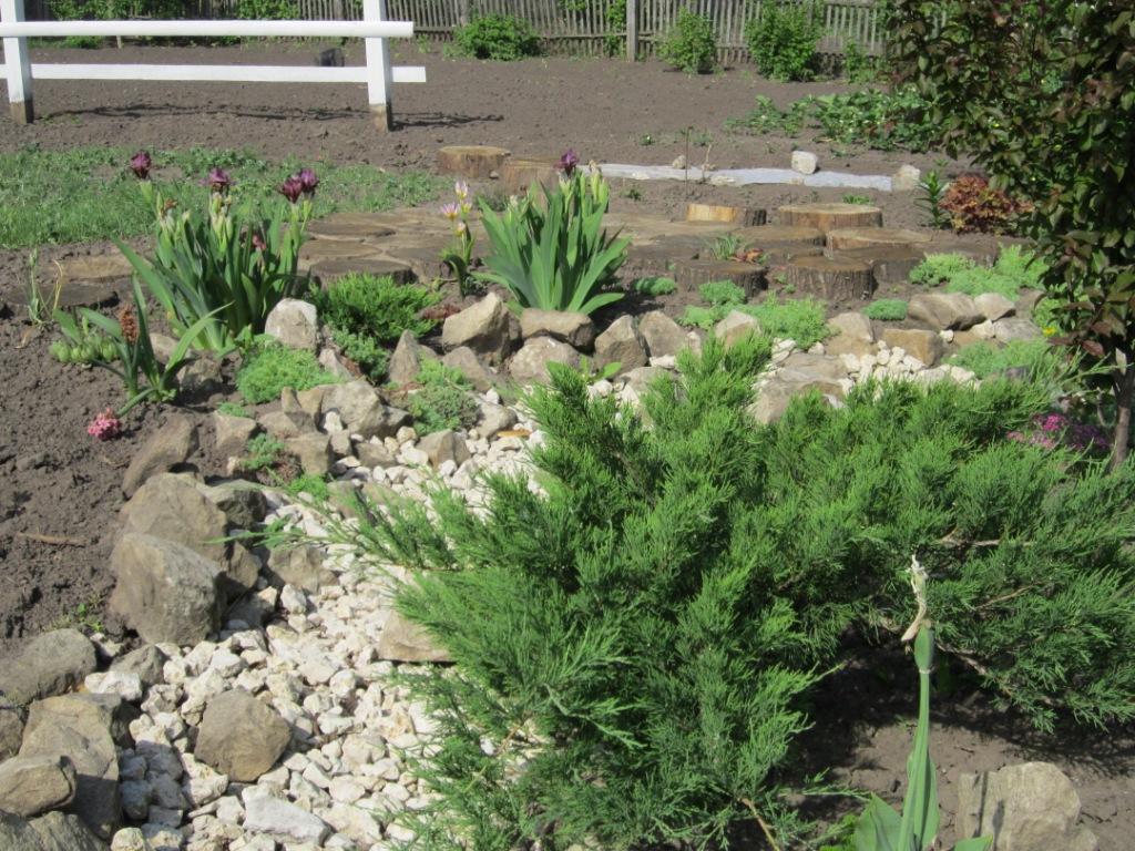 Я, наоборот, думаю в своём рокарии добавить камней. Хочу парочку больших положить и россыпи устроить на спанбонде. Только места маловато у меня. Сейчас поищу что-нибудь похожее, о чём говорю.