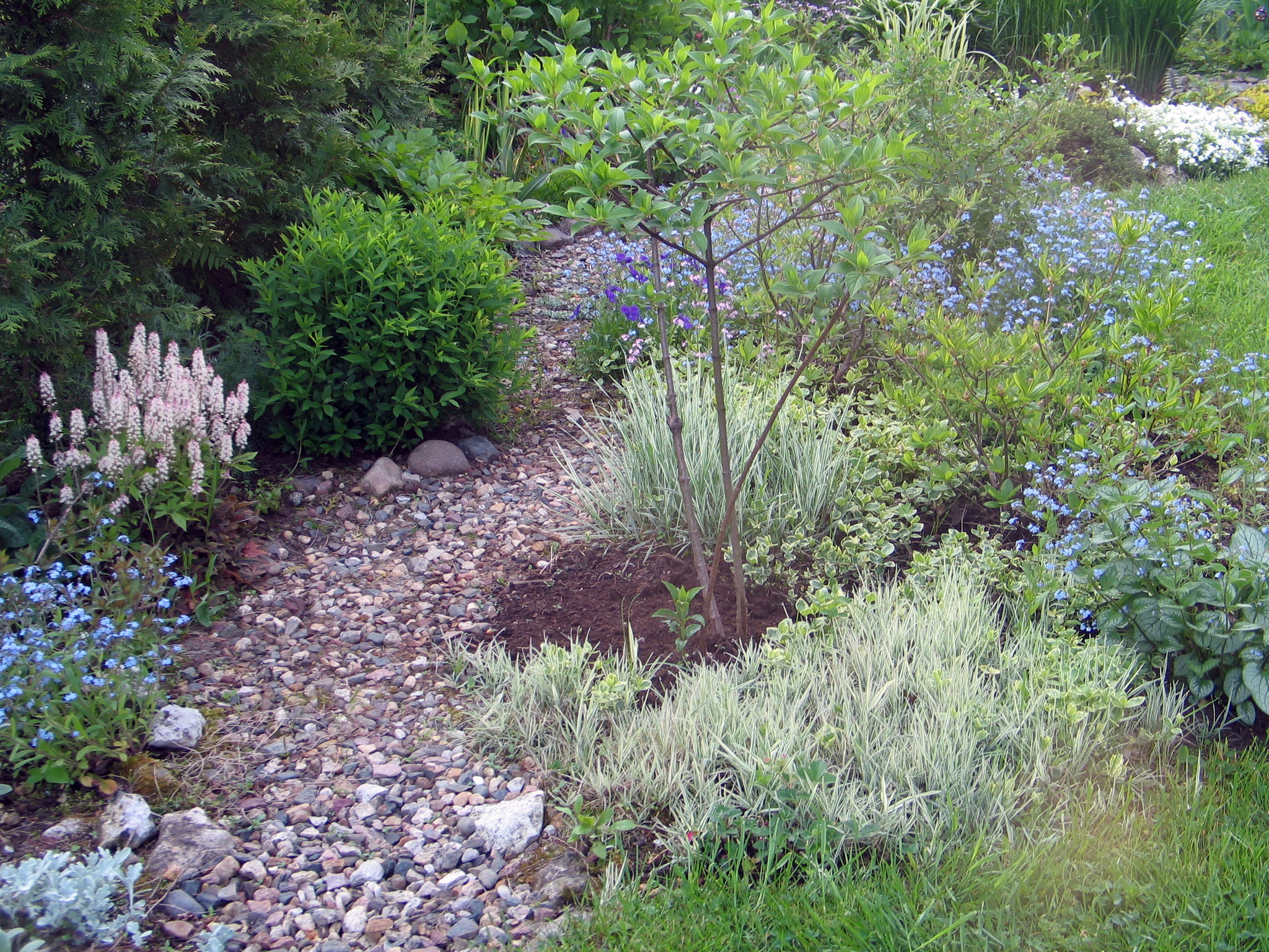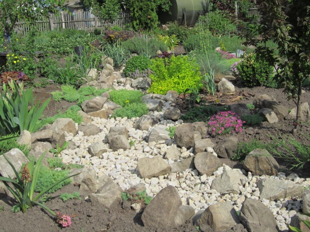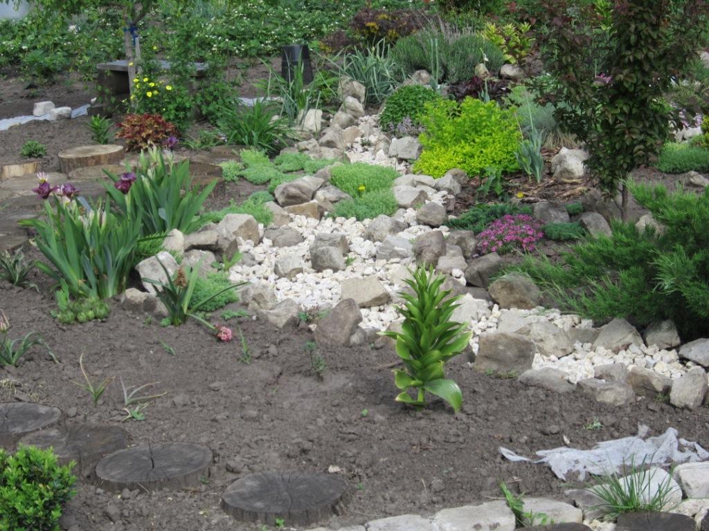 .Вот надо убирать у себя ручей ,искусственно он выглядит. Сейчас поищу старые фото ,когда только что сделала его . Посмотрите.