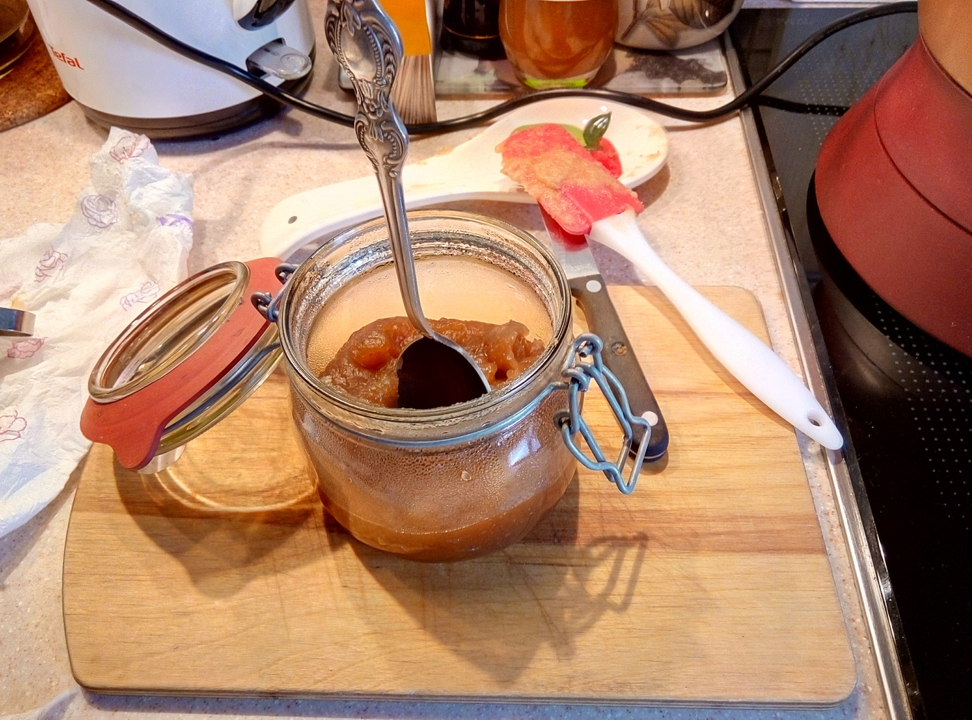 Сделала я повидло! Как положено. Темное, уваренное. Прозрачное в малом объеме. Ложка чуть-чуть не стоит.